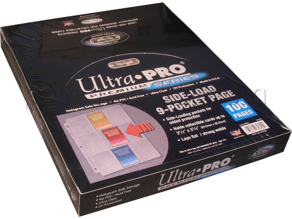 Tyto stránky s 9 kapsami, které jsou součástí vlajkové řady úložných stránek Ultra PRO, jsou prvotřídní volbou pro sběratelské karty, pohlednice, fotografie, útržky vstupenek, kupóny a mnoho dalšího. Každá stránka je na hřbetu opatřena hologramem kvality a pečetí pravosti Ultra PRO. Sránky jsou děrované třemi dírkami a mají velikost, která se hodí do tříkroužkových alb Ultra PRO standardní velikosti.