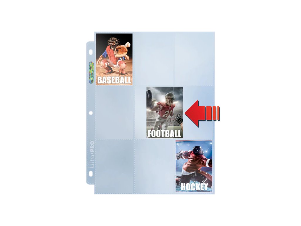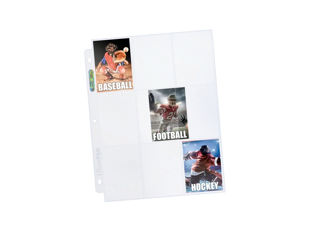 Tyto stránky s 9 kapsami, které jsou součástí vlajkové řady úložných stránek Ultra PRO, jsou prvotřídní volbou pro sběratelské karty, pohlednice, fotografie, útržky vstupenek, kupóny a mnoho dalšího. Každá stránka je na hřbetu opatřena hologramem kvality a pečetí pravosti Ultra PRO. Sránky jsou děrované třemi dírkami a mají velikost, která se hodí do tříkroužkových alb Ultra PRO standardní velikosti.