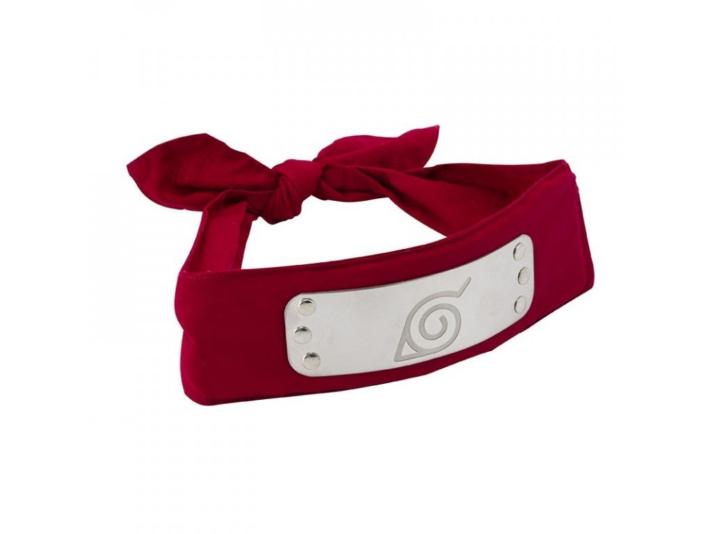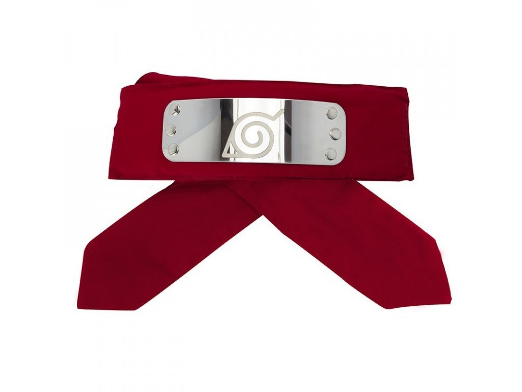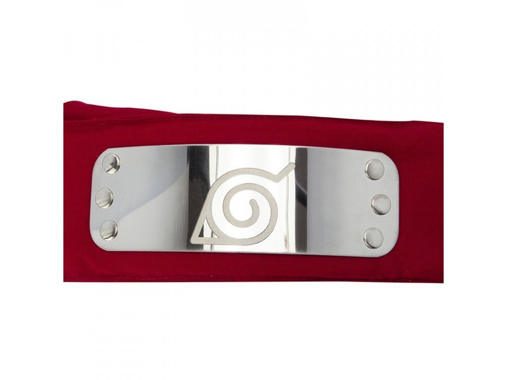 Braňte Konohu s krásnou replikou červené čelenky ninjů z japonské mangy Naruto Shippuden! Čelenka má rozměry 90 x 5 cm a zdobí ji kovový štítek se symbolem Konohy o rozměru 12,5 x 4 cm.