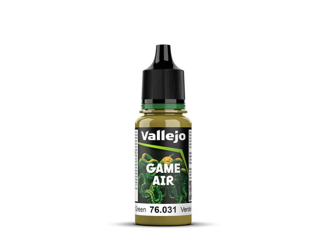 Kvalitní akrylovaná barva Camouflage Green od výrobce Vallejo je určená pro nanášení stříkací pistolí (airbrush). Barva velmi dobře přilne k povrchům a pro velmi malé detaily je možné je i nanášet špičkou štětce. Barvu je možné ředit přípravkem Airbrush Thinner a pro zpomalení schnutí barvy v pistoli je vhodné použít Airbrush Flow Improver. Game Air je řada akrylových modelářských barev speciálně vyrobených pro barvení fantasy figurek, dioramat a modelů všeho druhu. Objem lahvičky je 18 ml.Doplňkové parametry