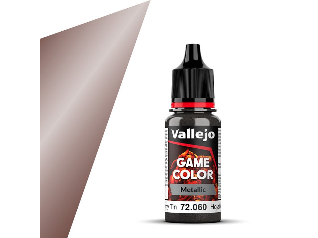 Barva Game Color Metallic Tinny Tin od firmy Vallejo se snadno nanáší. Díky vysokému podílu pigmentu perfektně kryje a má vysokou mechanickou odolnost. Barvy Game Color jsou po zaschnutí matné, syté a díky nové receptuře nezanechávavají viditelné tahy štětcem. Lze nanášet jak štětcem tak airbrushem po správném namíchání s ředidlem Airbrush Thinner.Doplňkové parametry