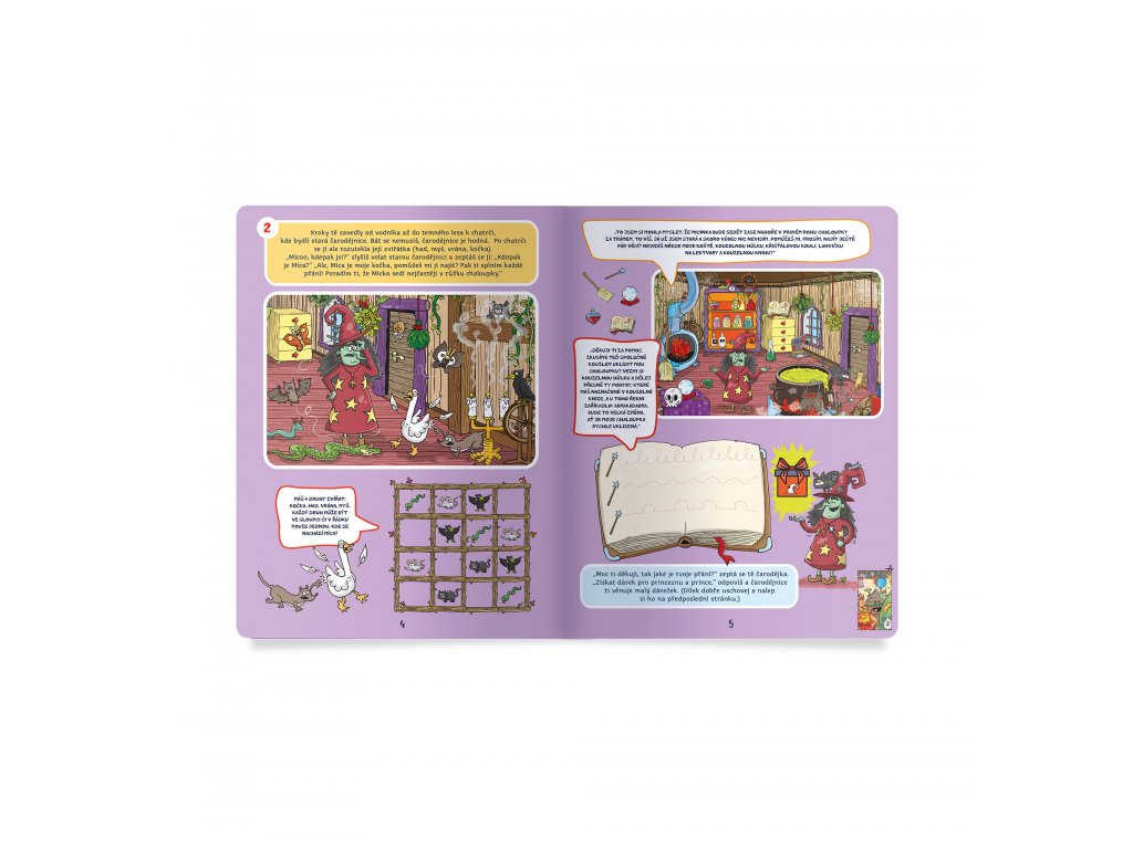 Cesta do pohádky obsahuje: 24 ilustrovaných stran obsahující nápadité úkoly, rébusy a hádanky.