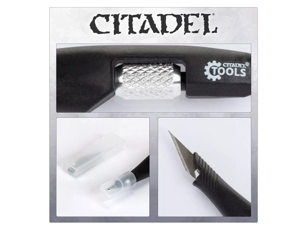 Přesný modelářský nůž od společnosti Citadel usnadní práci při práci s miniaturami. Nůž má ergonomickou rukojeť a skvělé vyvážení, součástí jsou také náhradní čepele.