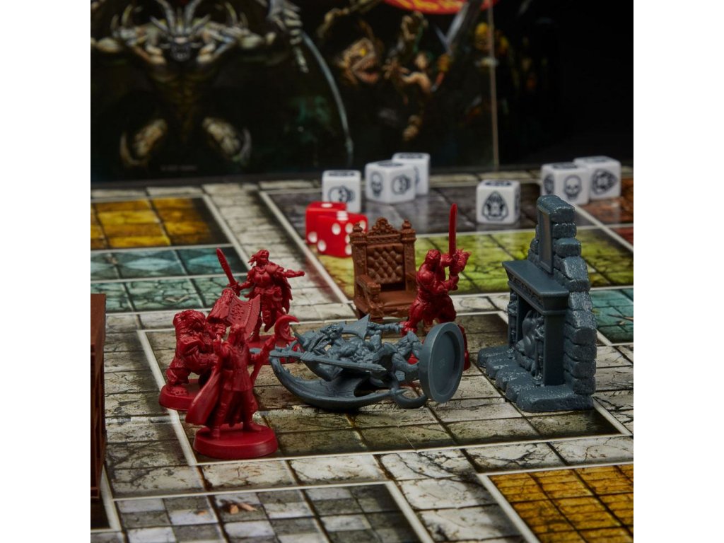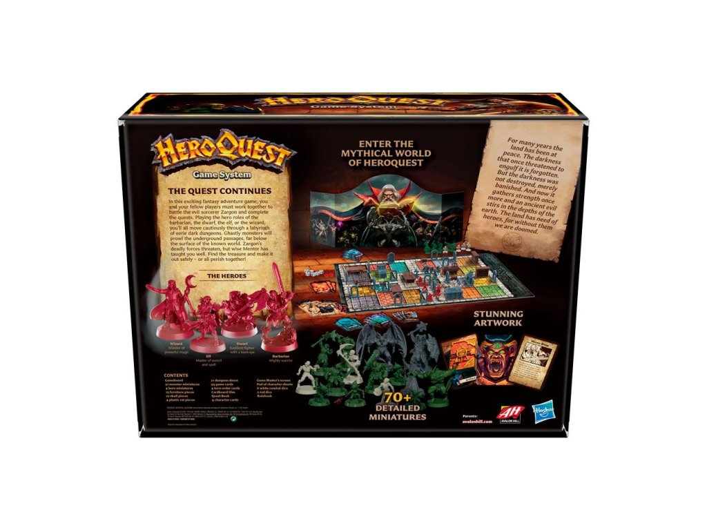 V deskové hře HeroQuest, kde hrdinové prozkoumávají temné kobky, spolupracují na splnění epických úkolů, hledají poklady a porážejí síly zla. Tato částečně kooperativní desková hra má jednoho hráče, který přebírá roli Zargona, Pána hry, zatímco další čtyři mytickí hrdinové - Barbar, Trpaslík, Elf a Kouzelník - se spojí v jejich dobrodružství v bludišti plném monster a strašidelných temných kobek. Hráči se mohou ponořit do fantasy díky úchvatné grafice a více než 65 detailním miniaturám. Hra obsahuje 14 úkolů a nabízí nekonečnou hratelnost, protože hráči mohou také vytvářet své vlastní úkoly a vytvářet své vlastní příběhy. Sežeňte přátelé na vzrušující večer stolní hry v epické bitvě dobra a zla. Hra je určena pro 2-5 hráčů ve věku 14 let a více. Součástí hry je herní plán, 31 figurinek příšer, 4 figurky hrdinů, 15 kousků nábytku, 10 lebečných figurek, 4 plastové figurky krys, 21 dveří kobek, 93 hracích karet, 4 karty pořadí tahů, kartonové dlaždice, Kniha úkolů, 4 karty postav, obrazovka Pána hry, blok se záznamy postav, 6 bílých bojových kostek, 2 červené kostky a pravidla. Anglická verze.