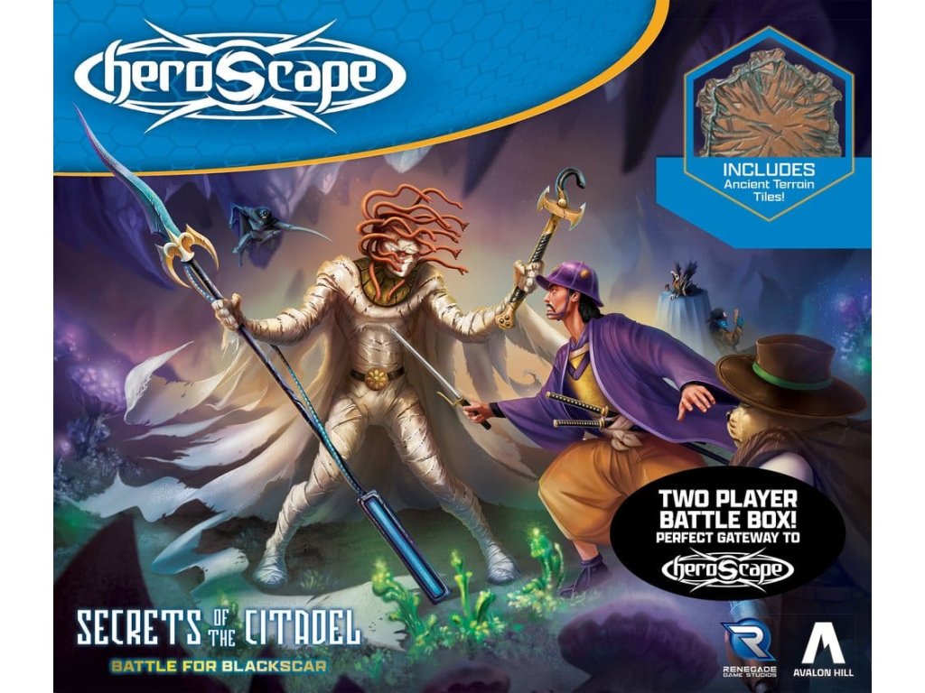 Vstupte do stínem pokryté divočiny Blackscar, kde se ovládání střetávají vrazi, nemrtvá království, vzdušní průzkumníci, oceloví muži zákona a disciplinovaní samurajové. Tento bojový box představuje šest zcela nových hrdinů a živou houbovou hrozbu, která přetváří bojiště odvážnými, filmovými způsoby. S dynamickými schopnostmi, křížovými sympatiemi frakce a dramatickými taktickými momenty nabízí Bitva o Blackscar vše, co hráči milují na Heroscape – vylepšené o nové mechaniky a nezapomenutelné postavy. Tato hra obsahuje více než 30 plastových miniatur a klasickou hru Heroscape s moderním twistem! Divočina Blackscar je bojištěm. Jste připraveni na boj?Funkce- 2 hráčský bojový box s vším potřebným pro hraní Heroscape!- Obsahuje 6 zcela nových, vysoce detailních, nenabarvených miniatur!- Modulární systém hex-tile terénu pro nekonečnou přehrávání.- Představuje nové mechaniky a nezapomenutelné postavy.Obsah- 1 pravidla- 1 scénář- 6 vysoce detailních miniatur- 6 armádních karet- 25 dílů terénu Hex Tile- 2 destruktivní objekty Young Shroudshroom- 8 bojových kostek D6- 1 20-stranná kostka- 8 objednávkových označení- 20 zranění markerů- 1 sledovač kolaNa první pohled- Pro věk: 14+- Typ hry: strategická hra- Hráči: 2