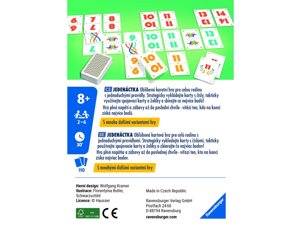 Poznejte 11! – klasickou karetní hru, která baví generace hráčů už od roku 1925! Tato hra přináší rychlou zábavu, jednoduchá pravidla a napětí až do poslední karty. Kombinujte karty strategicky, překazte plány soupeřům a chytrým tahem ukončete hru v ten pravý moment! Ideální volba pro rodinné večery i přátelské souboje, ve kterých se u stolu nikdo nebude nudit. 11! – léty ověřená klasika, která přináší radost všem věkovým kategoriím.