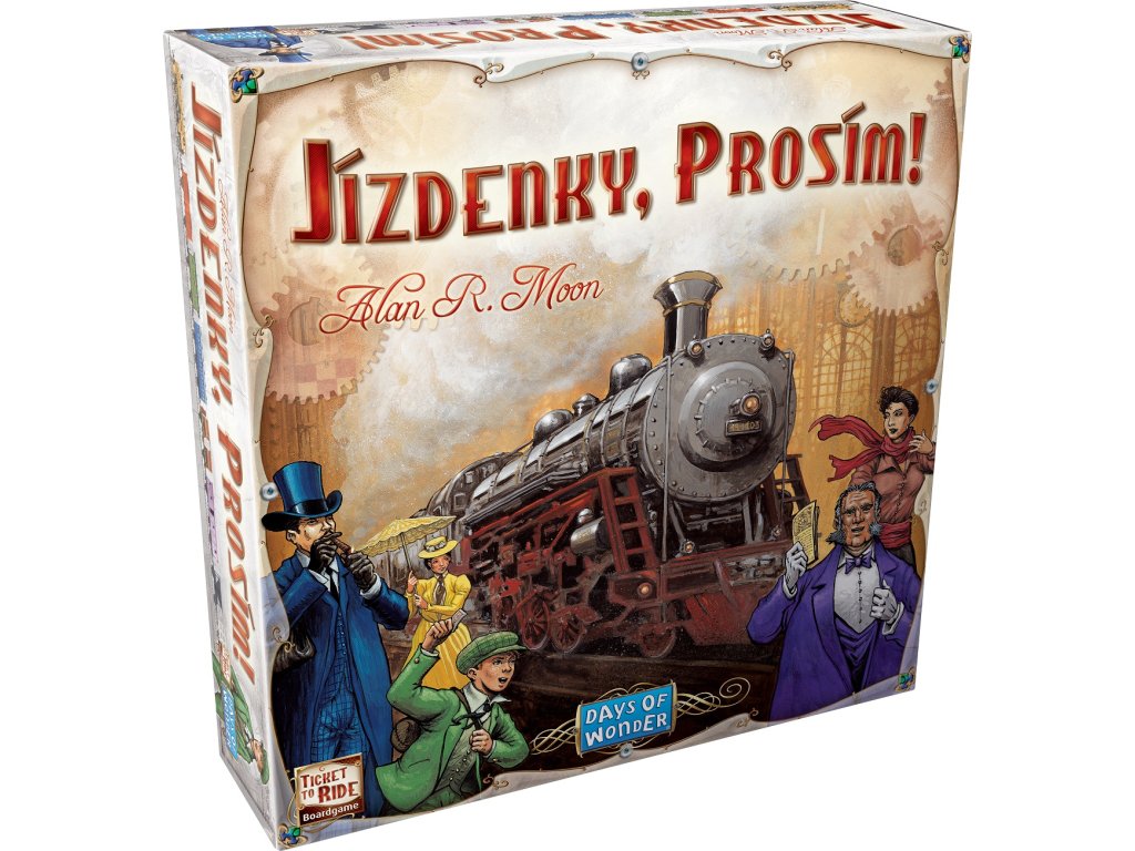 Je 2. října 1900-28 let ode dne, kdy známý londýnský podivín Phileas Fogg přijal a následně vyhrál sázku o 20.000 liber. Dokázal totiž objet svět za 80 dní. Nyní, na počátku nového století, nadešel čas pro novou velkolepou cestu. Staří přátelé z univerzity se sešli, aby oslavili památku Foggovy neuvěřitelné cesty a předložili návrh na novou expedici a novou sázku. Sázka: 1 milion dolarů pro vítěze. Úkol: za pouhých sedm dní procestovat po železnici Severní Ameriku.Jízdenky, prosím! je veleúspěšná hra oceněná titulem "Hra roku", která je určená pro všechny milovníky světa železnic a dobré rodinné zábavy. Hráči mají za úkol získat během hry co nejvíce bodů - stavěním kolejí a propojováním měst v Severní Americe. Další body pak získávají, pokud se jim podaří dokončit tratě z karet cílových stanic nebo postaví nejdelší nepřerušovanou trať. To vše je postaveno na jednoduchých pravidlech, která se dají naučit doslova za pár minut! Nastupte do vlaku a prožijte se svojí rodinou nebo přáteli zábavné a dobrodružné cestování po železnici!