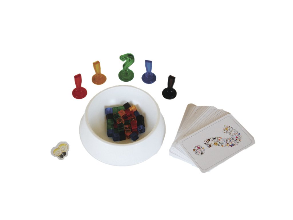 Tým si vytáhne horní kartu konceptu a vybere si slovo nebo frázi ze seznamu na kartě, kterou budou ostatní hráči hádat. Jako první umístěte na hrací plán figurku hlavního konceptu (otazník) a poté další kostičky stejné barvy pro naznačení celého hlavního konceptu. Pokud chcete, můžete umístit další figurky a kostičky stejné barvy (viz příklady) a upřesnit tak hlavní koncept.