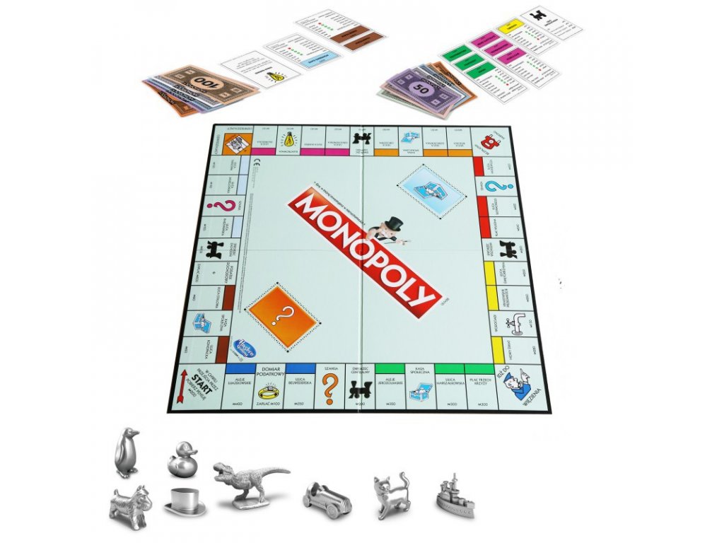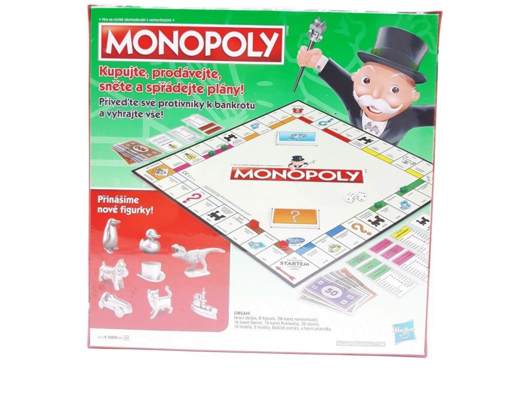 Oblíbená hra Monopoly, nyní v novém obalu a s novými figurkami, byla vynalezena v Americe v době světové hospodářské krize. Je to hra na obchodování ve velkém a na rychlé zbohatnutí. Váš úspěch záleží na vašich spekulacích, rozumných investicích a chytrých obchodech. I když vám štěstí nepřeje, můžete využít hypoték a obchodů s ostatními hráči. Pokud se stanete nejbohatším hráčem a přivedete ostatní soupeře k bankrotu - vyhráli jste Monopoly.