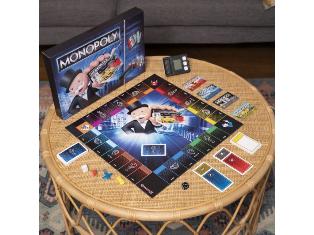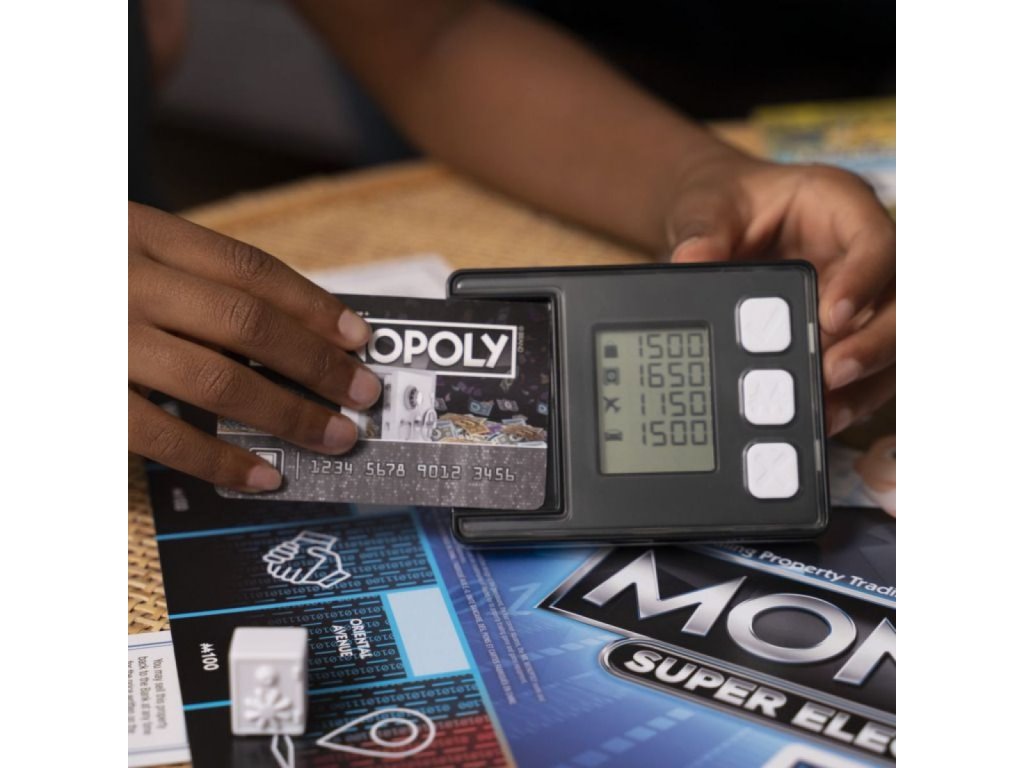 Rodinná strategická desková hra Monopoly Super elektronické bankovnictví (Monopoly Super Electronic Banking) pro 2-4 hráče pro děti od 8 let od společnosti Hasbro v českém jazyce.