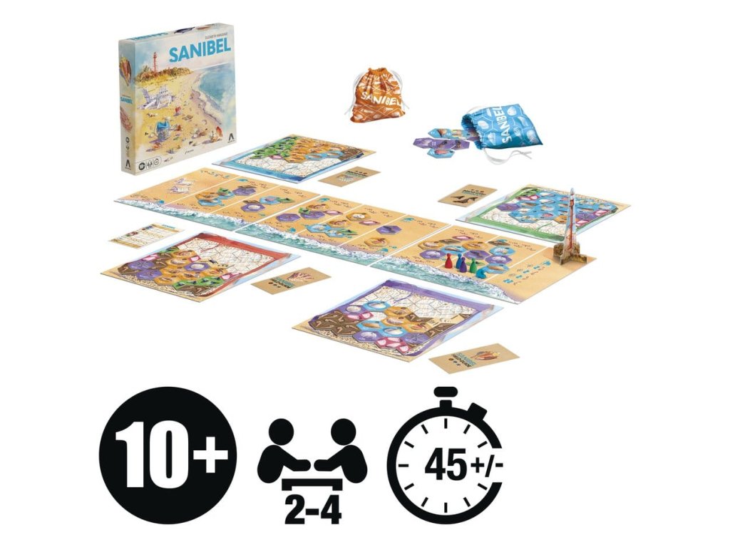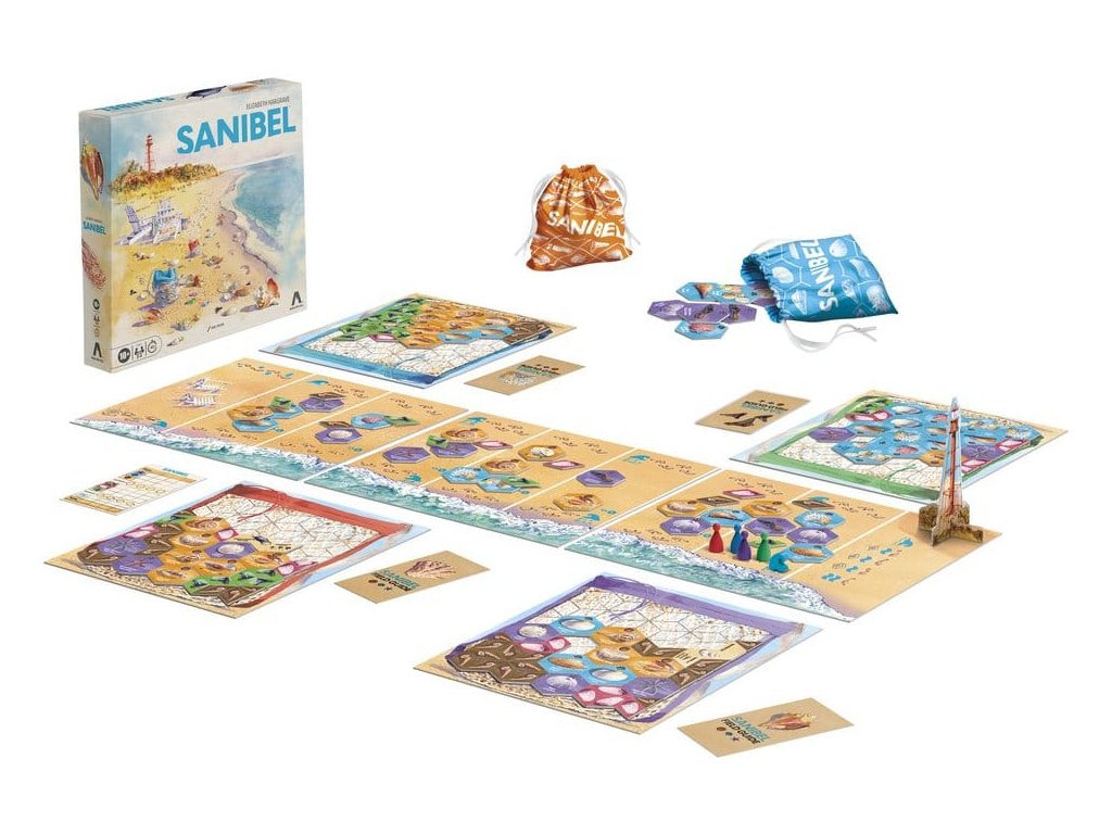 Ostrov Sanibel na Floridě je známý svými poklady ve formě mušlí. Procházejte se jeho pobřežím a sbírejte mušle a další přírodní zázraky: písečné dolary, mořské hvězdice, kraby a další! Ve stolní hře Sanibel, kterou navrhla Elizabeth Hargraveová, hráči posouvají své hrací žetony podél plážového herního plánu, vytahují dlaždice s mušlemi a strategicky je uspořádávají na svém podložce pro body. Sbírejte různé sady mušlí a kombinace, abyste získali co nejvíce bodů. Vyhrává hráč s nejvyšším skóre! Pravidla jsou snadno naučitelná a hráči se mohou těšit na zvládnutí strategií v této vysoce hráli hře. Užijte si ji jako hru pro 2 hráče nebo až pro 4. Hry na kladení dlaždic a rodinné stolní hry jsou zábavné hry pro rekreační bydlení, rodinnou herní noc a po večeři. Strategické stolní hry pro dospělé a rodinu jsou také skvělými dárky pro děti od 10 let, dospívající a dospělé.