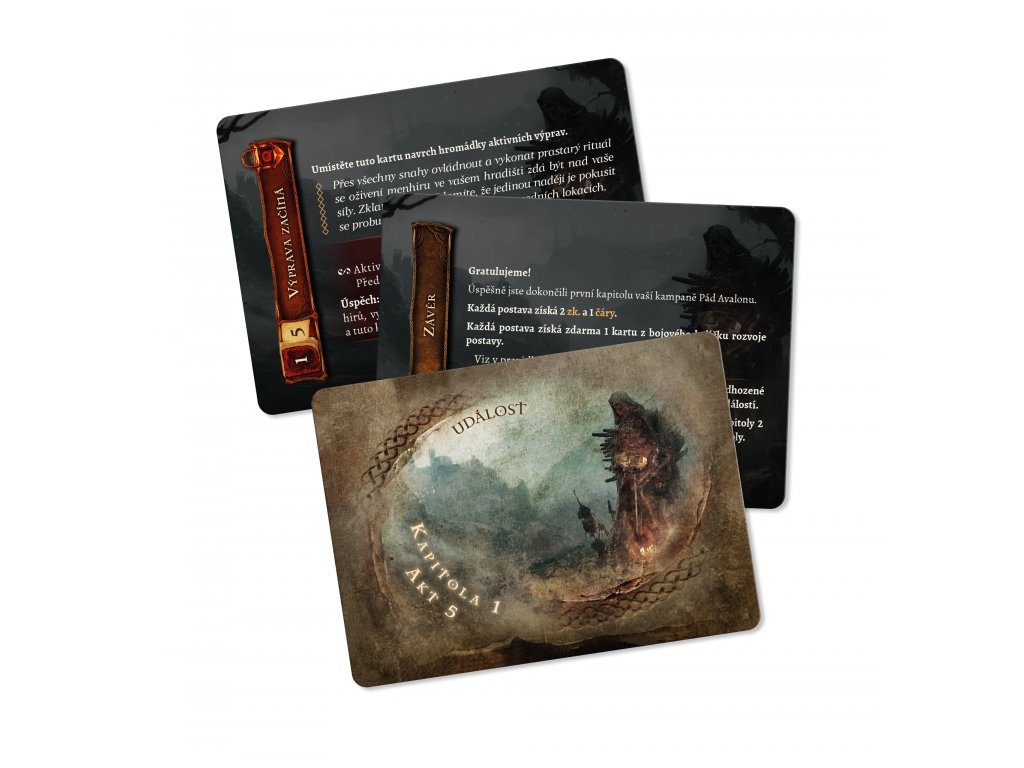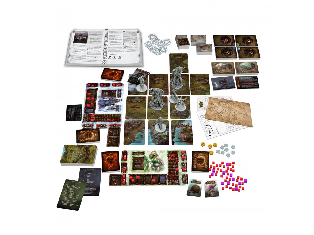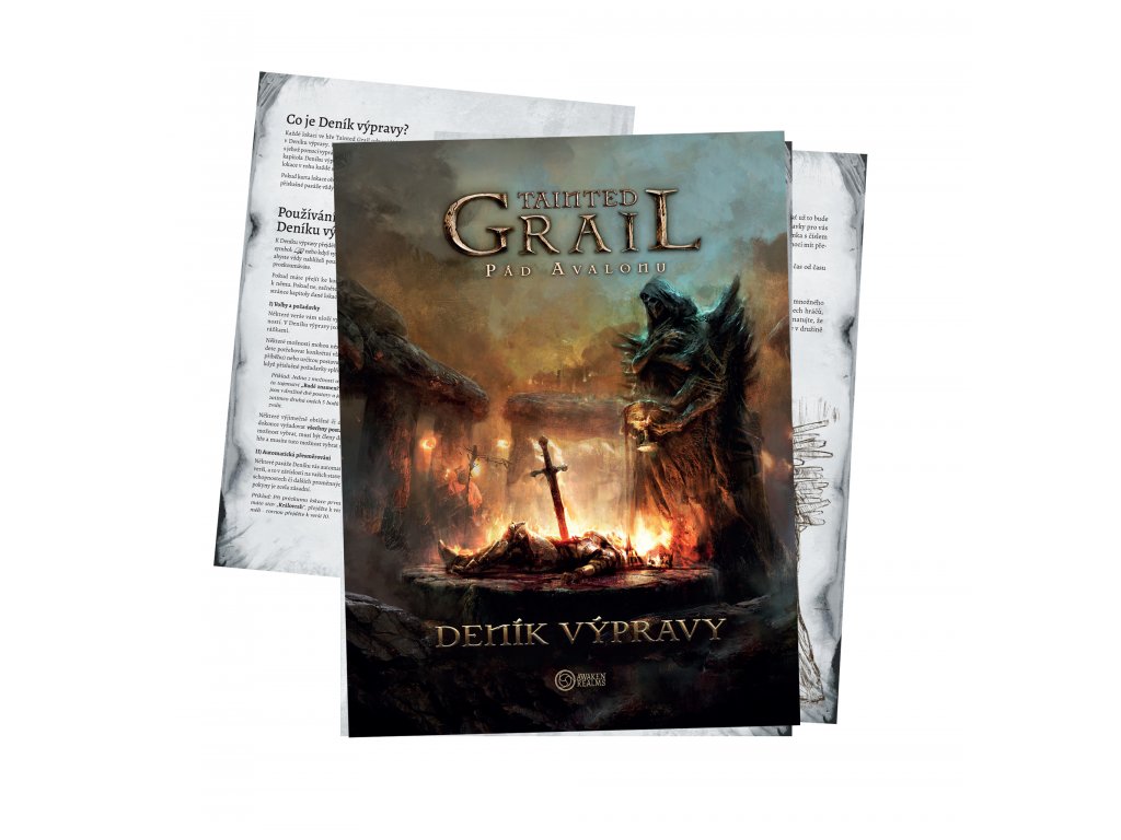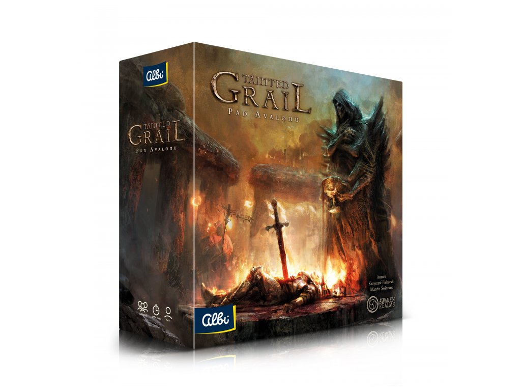 Hra Tainted Grail: Pád Avalonu obsahuje: 8 detailních figurek, 200 stran vzrušujícího příběhu, 10 plastových mincí, 4 dvojité hráčské desky, 8 dopisů a map, 110 žetonů a ukazatelů, 760 karet a pravidla.
