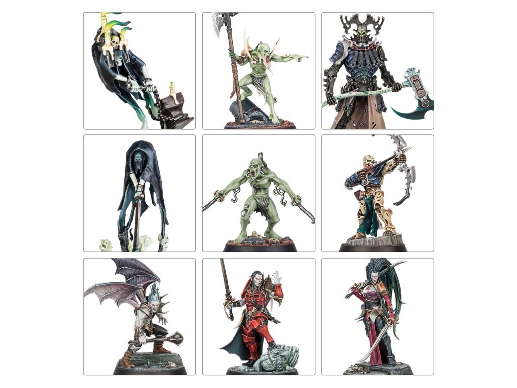 Tato sada obsahuje čtyři bojové skupiny s tématikou Death pro Warhammer Underworlds. Všechny miniatury jsou nasouvací, vylisované z barevného plastu a obsahují scénické podstavce na rámečcích, takže můžete rychle začít hrát. Pro každou warbandu najdete také karty warscroll a fighter karty. Kainan's Reapers a The Crimson Court jsou univerzální Flex warband, The Headsmen's Curse jsou agresivní Strike warband a The Grymwatch jsou tvrdý Take and Hold warband.