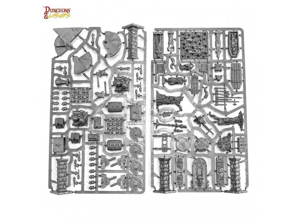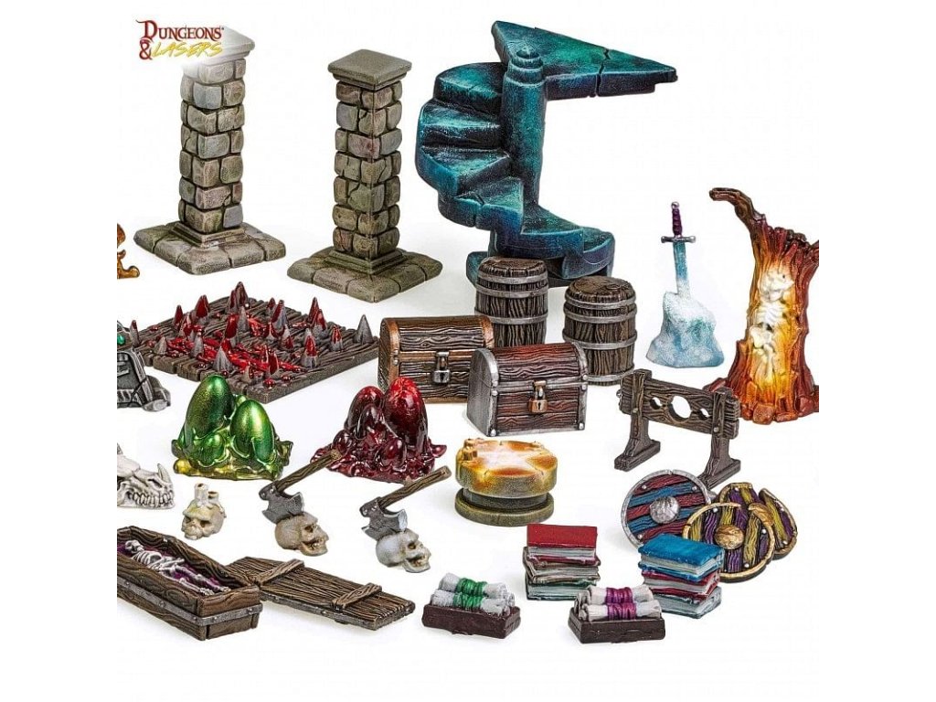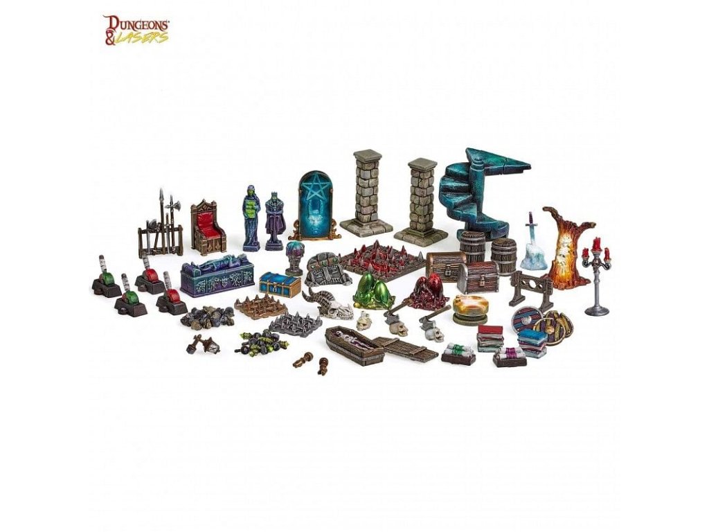 Sada Dungeons & Lasers: Fantasy Customization Bits obsahuje 70 plastových dekoračních prvků pro fantasy dungeony, díky kterým jednoduše vytvoříte úžasnou atmosféru pro vaše hráče! Dungeons & Lasers: Fantasy Customization Bits je kompatibilní s Dungeons & Dragons 5E nebo kteroukoliv jinou hrou na hrdiny. Součástí balení je anglická příručka s instrukcemi pro složení a nabarvení.Doplňkové parametry