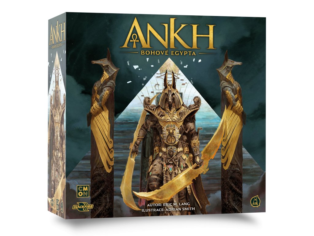 žetonů Ankh o 1 plastový drahokam o 1 hrací plán o 2 hlavní desky o 10 desek bohů o 46 karet o 197 žetonů