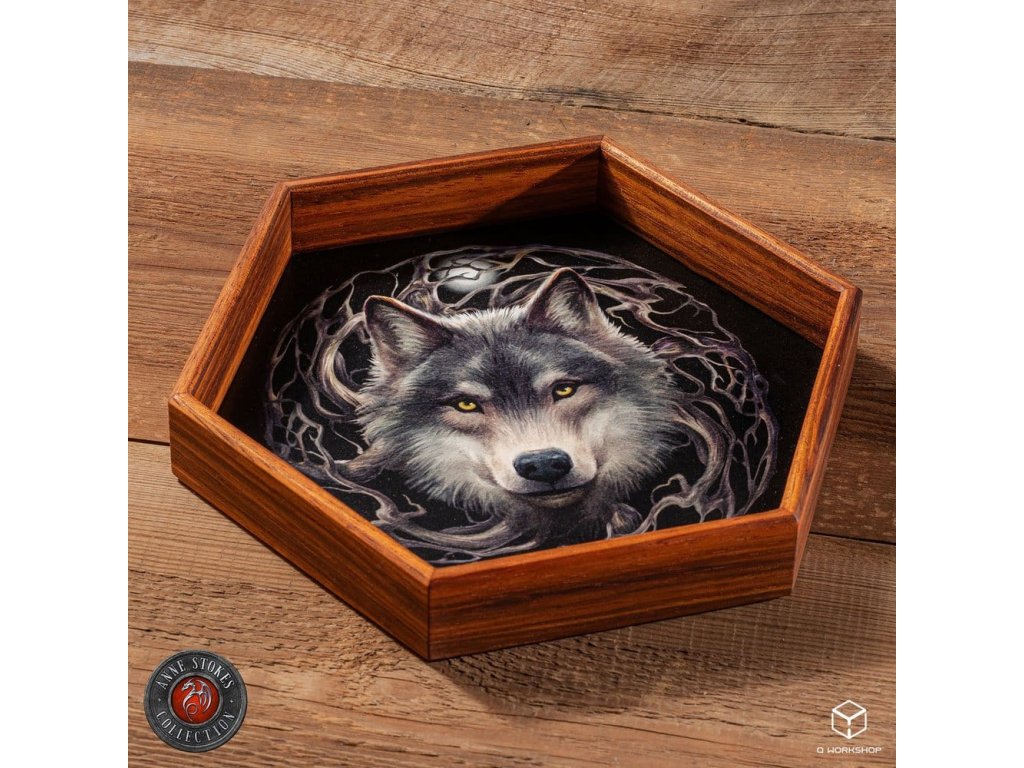 Dřevěná herní deska na kostky o rozměrech 20 x 23 x 3,5 cm.