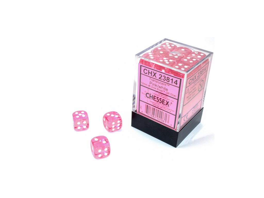 Chessex - kostky - Translucent Pink/white 12mm d6 Dice Block (36 kostek)