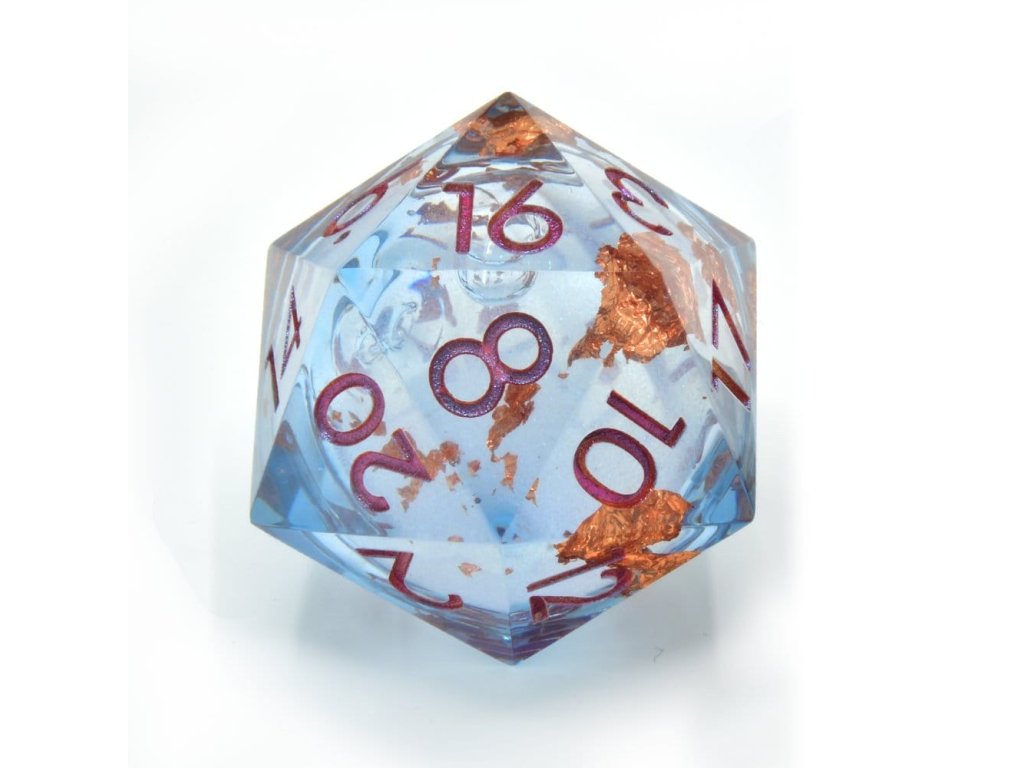 Jděte na všechno anebo jděte domů! Tyto d20 jsou podstatně větší než běžné d20. Jsou skutečně zajímavým konverzačním kouskem a něčím, co můžete použít pro speciální hody! Vyrobena z prémiové pryskyřice, tato d20 je ručně odlita a má ostré hrany. Uvnitř má tekuté jádro s třpytivými částicemi. Tato d20 je pečlivě vyvážena, aby zajistila spravedlivou hru, mají na sobě jasná čísla, aby byla snadno čitelná.