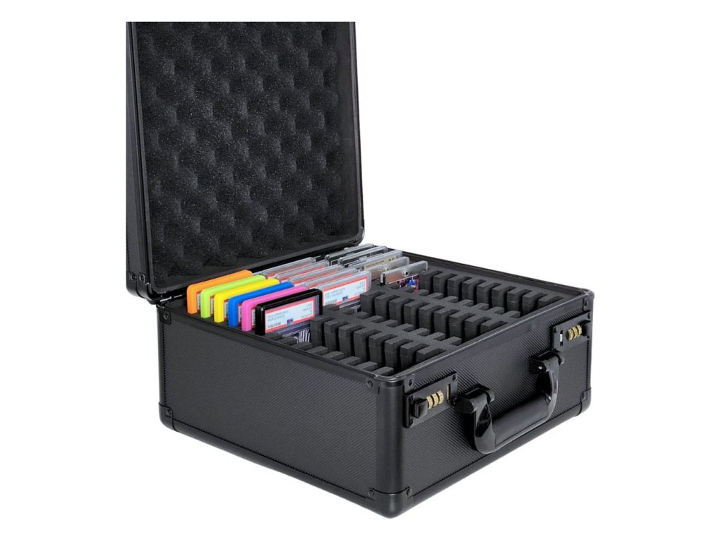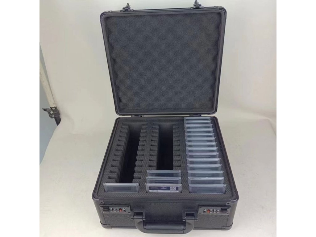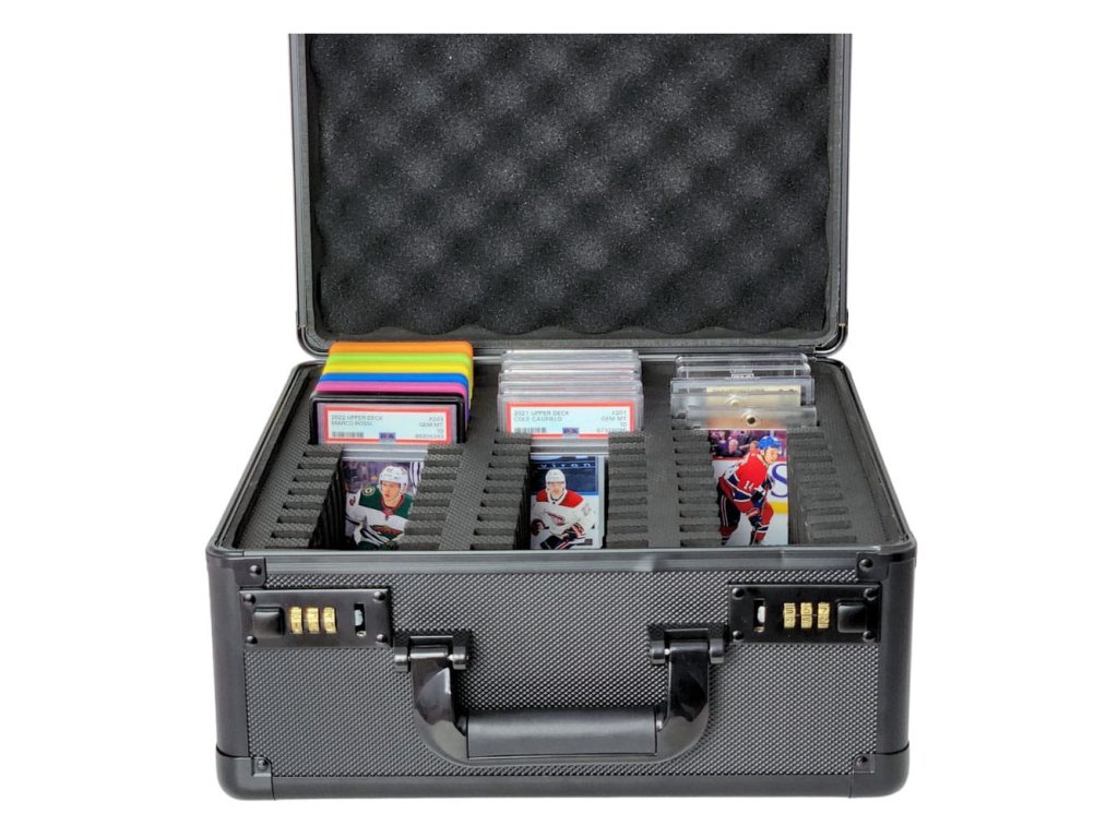Tento nosič s třemi řadami pro hodnocené karty bezpečně pojme až 42 hodnocených karet a nabízí optimální ochranu a zobrazení. S pevnou MDF deskou, oddělovači EVA a elegantním hliníkovým rámečkem je ideální pro sběratele, kteří potřebují jak organizaci, tak styl. Klíčové vlastnosti: - Pojme až 42 hodnocených karet - 3 řady s individuálními sloty - Rozměry: 33,3 x 31,8 x 17,8 cm - MDF deska s hliníkovým rámečekem a ABS - EVA oddělovače pro ochranu karet.