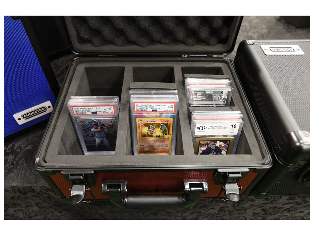 Organizujte a ochraňujte své hodnocené karty pomocí pouzdra EVORETRO s třemi řadami. Pojme až 90 dosk s klíčovým zámkem pro optimální bezpečnost. Odolný a kompaktní design, ideální pro vážné sběratele. Velikost: 35,50 x 26 x 17,60 cm.