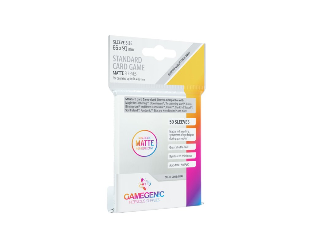 Obaly značky Gamegenic poskytují kartám prvotřídní ochranu. Zamezují poškrábaní, ohnutí a poškození častým mícháním.• Matné provedení na přední i zadní straně zabraňuje nepříjemným odleskům a únavě očí při hraní.