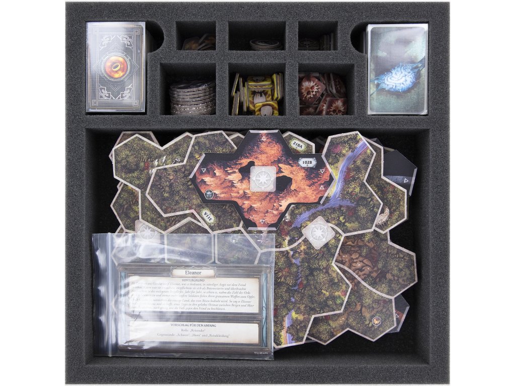 Insert na herní komponenty pro hru Pán prstenů: Putování po Středozemi - Stínové cesty ochrání všechny herní komponenty, které budete mít navíc přehledně roztříděné a uspořádané. Obsah balení: 1 pěnový pořadač pro miniatury a žetony (AFMEYA060BO) 1 pěnový pořadač pro karty, herní díly a žetony (AFMEXZ055BO) 1 pěnové víko