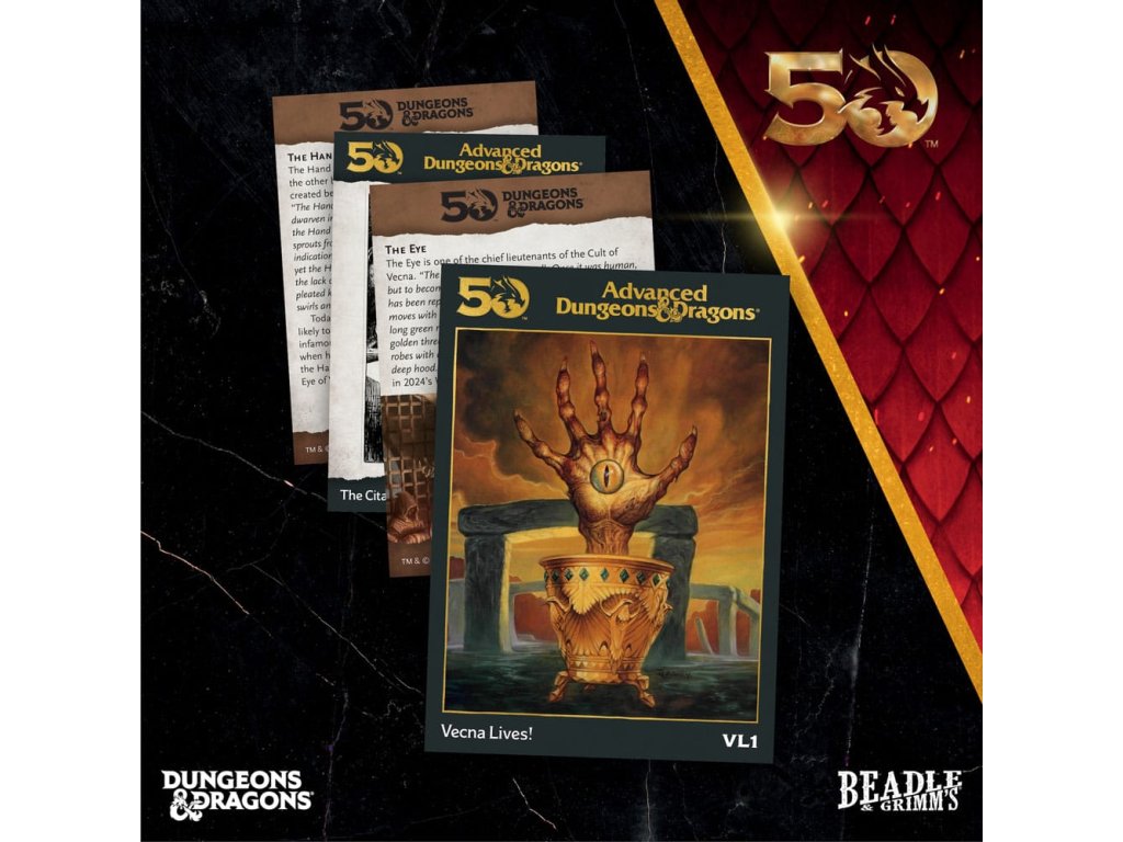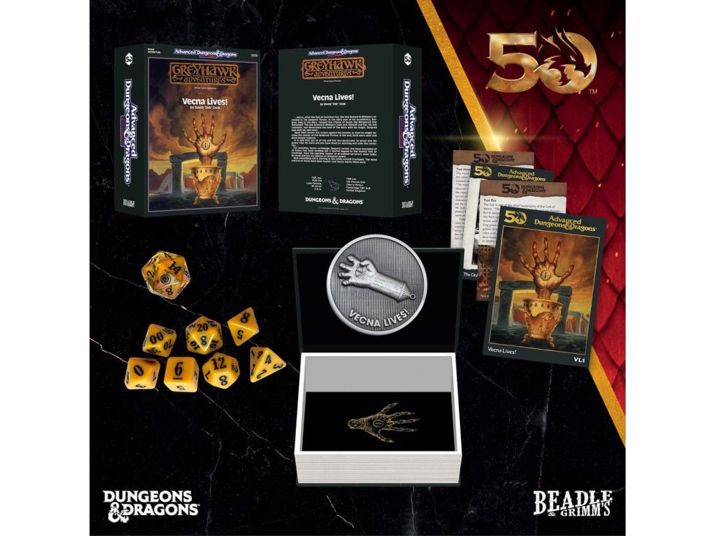 Oslavte šest legendárních dobrodružství Dungeons & Dragons s těmito limitovanými sbírkami k 50. výročí! Každá kolekce kostek pro klasický modul zahrnuje: - Knihovní sběratelské krabičky s koženým vnitřkem (široké 4,6 cm, vysoké 6 cm a hluboké 1,75 cm) - Standardní sada sedmi pryskyřičných kostek s exkluzivní, nadrozměrnou 20-strannou kostkou navrženou tak, aby doplnila každé dobrodružství - Dvoupalcová sběratelská kovová mince připomínající dobrodružství a 50. výročí D&D - Čtyři sběratelské karty s uměleckými díly a informacemi o každém dobrodružství a jeho odkazu