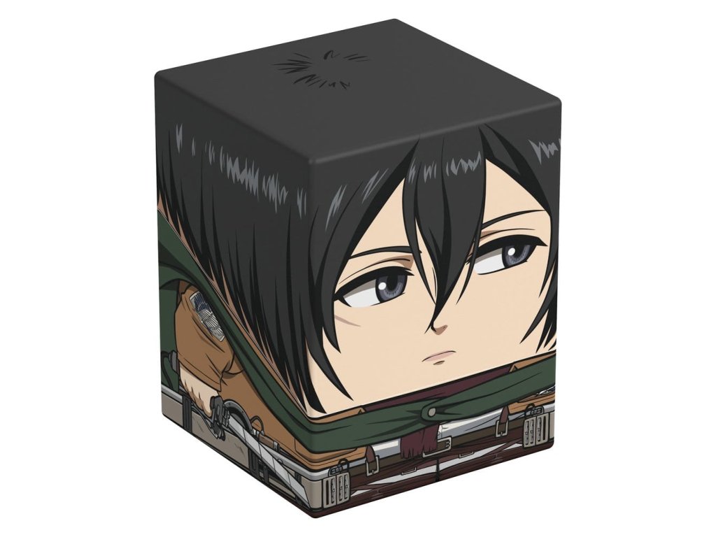 Sběratelská krabička na uskladnění balíčků TCG, příslušenství pro stolní hry a/nebo sběratelské předměty. Mikasa Ackermann Squaroe z edice Útok na Titány pojme až 100 karet v dvojitých ochranných obalech, pokud je použita jako krabička na balíček. Squaroes jsou vyrobeny ze 78% obnovitelných zdrojů a dokonale se hodí do samostatně dostupného Sběratelského pouzdra.