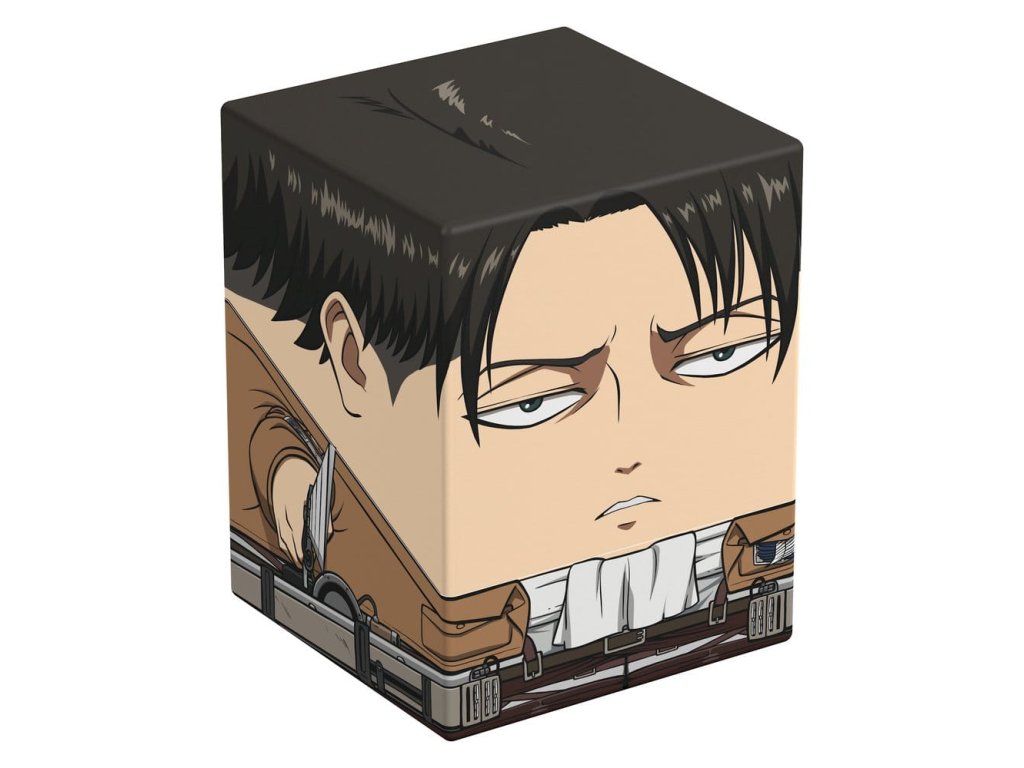 Sběratelská krabička na uskladnění TCG balíčků, příslušenství pro stolní hry a/nebo sběratelských předmětů. Squaroe Levi Ackermann z edice Útok Titánů pojme až 100 karet v dvojité ochranné fólii, pokud je použit jako krabička na karty. Squaroes jsou vyrobené z 78% obnovitelných zdrojů a dokonale se vejde do samostatně prodávané sběratelské krabice.