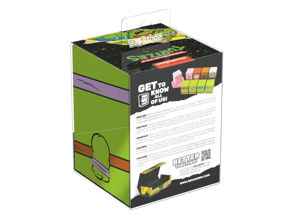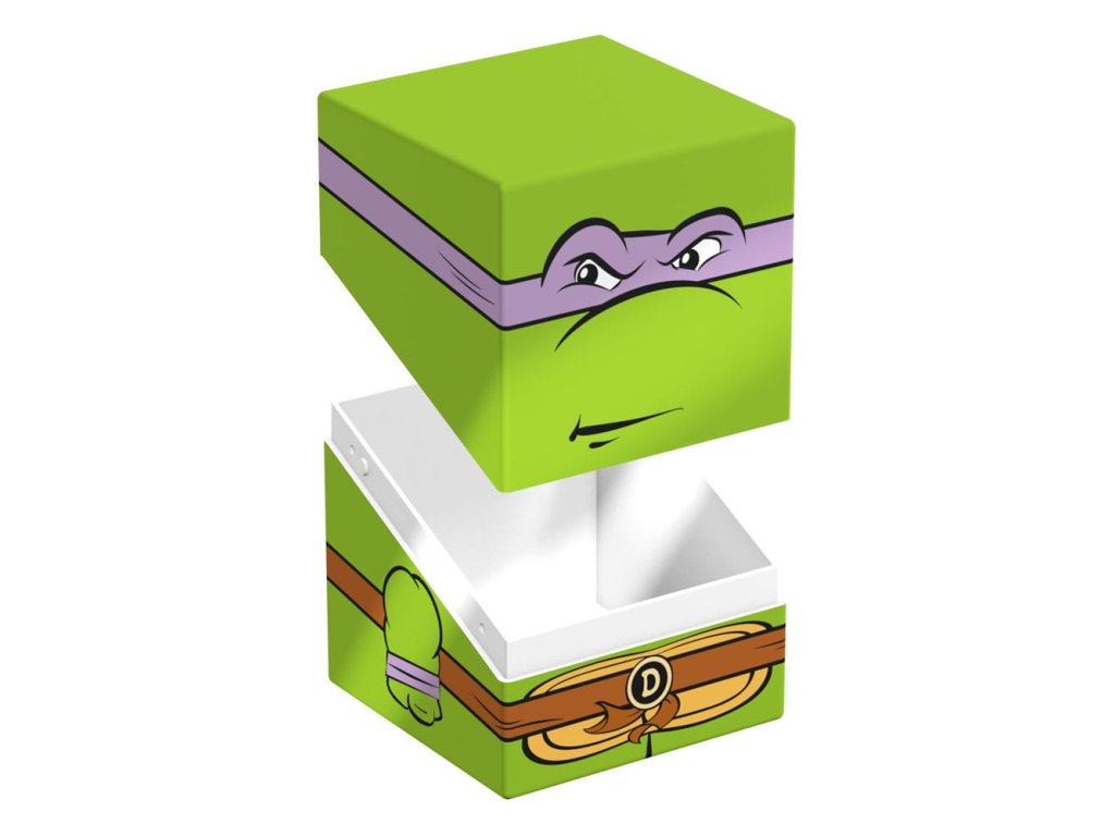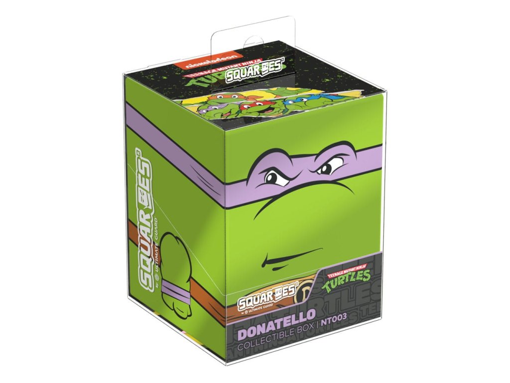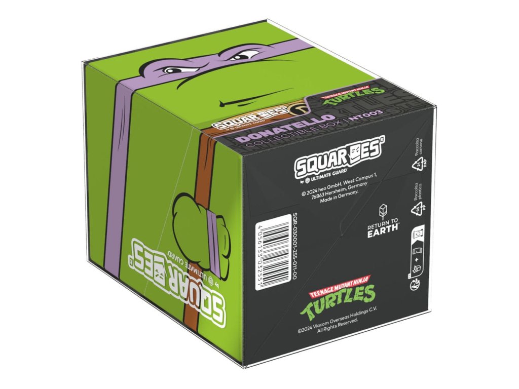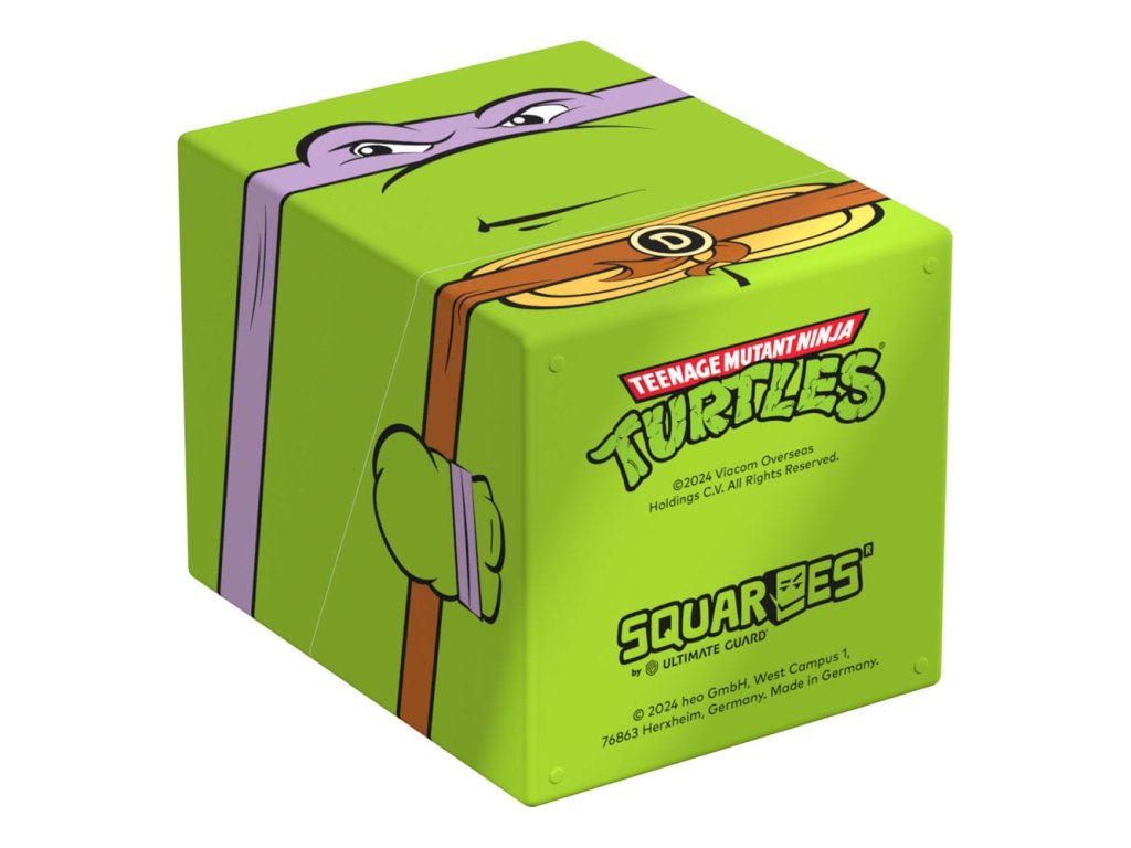 Sběratelská krabička pro ukládání TCG balíků, příslušenství pro stolní hry a/nebo sběratelských předmětů. Donatello Squaroe z edice Teenage Mutant Ninja Turtles™ pojme až 100 karet v dvojitých ochranných obalech, pokud je použita jako krabička na karty. Squaroes jsou vyrobeny ze 78% obnovitelných zdrojů a dokonale se hodí do samostatně dostupné sběratelské pouzdra. - Plně potištěná sběratelská krabička s bezpečným uzavíráním - Vyroběno v Německu z 78% obnovitelných zdrojů - Krabice na balíky pojme až 100 dvojitě obalených nebo 120 jedně obalených sběratelských karet - Rozměry: 98,5 x 76 x 75 mm