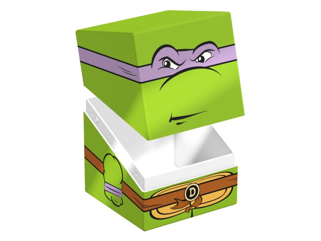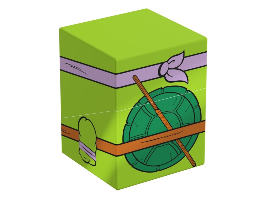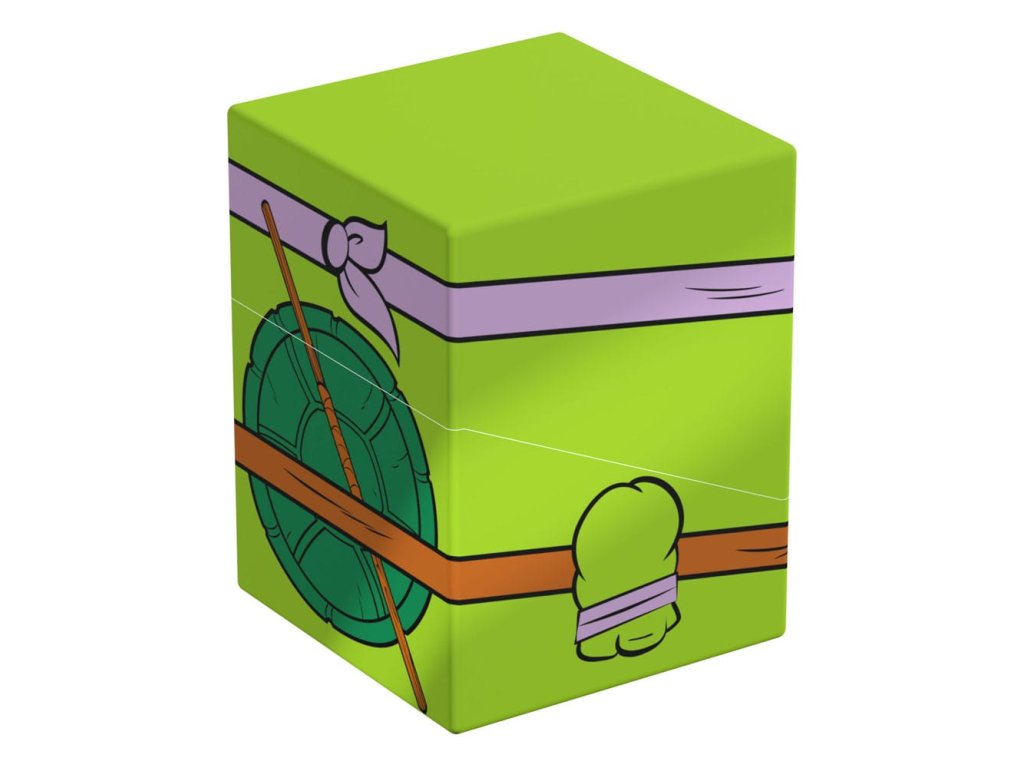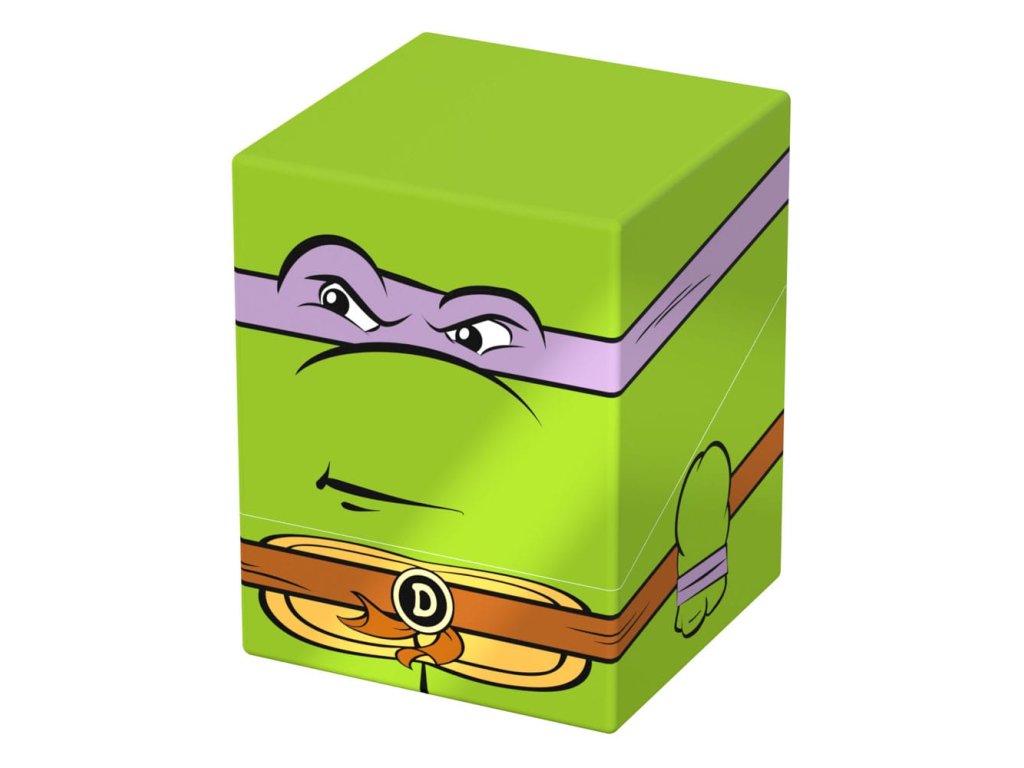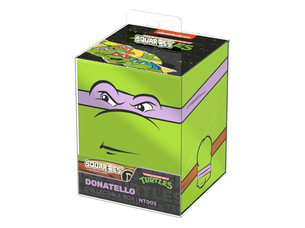 Sběratelská krabička pro ukládání TCG balíků, příslušenství pro stolní hry a/nebo sběratelských předmětů. Donatello Squaroe z edice Teenage Mutant Ninja Turtles™ pojme až 100 karet v dvojitých ochranných obalech, pokud je použita jako krabička na karty. Squaroes jsou vyrobeny ze 78% obnovitelných zdrojů a dokonale se hodí do samostatně dostupné sběratelské pouzdra. - Plně potištěná sběratelská krabička s bezpečným uzavíráním - Vyroběno v Německu z 78% obnovitelných zdrojů - Krabice na balíky pojme až 100 dvojitě obalených nebo 120 jedně obalených sběratelských karet - Rozměry: 98,5 x 76 x 75 mm
