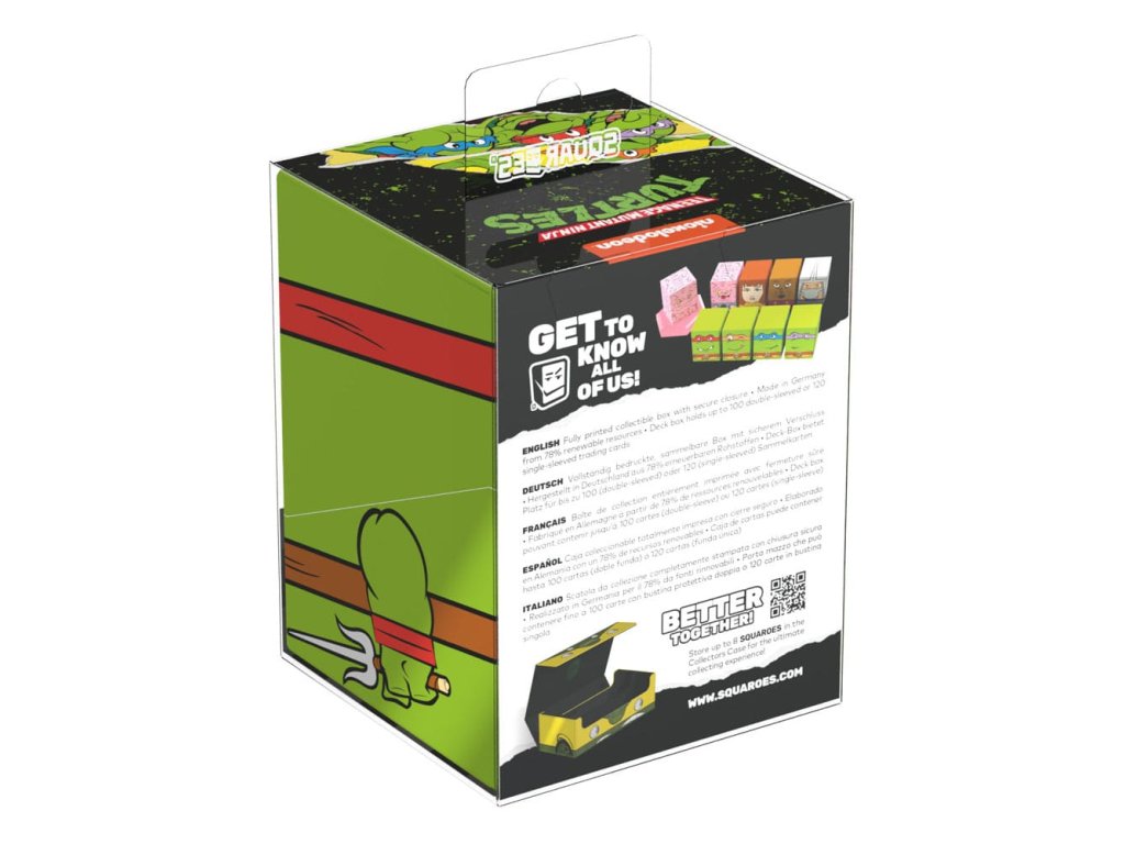 Sběratelská krabice pro uskladnění TCG balíčků, příslušenství stolních her a/nebo sběratelských předmětů. Raphael Squaroe ze série Teenage Mutant Ninja Turtles™ pojme až 100 karet v dvojitých ochranných pouzdrech, pokud je použita jako krabice na balíček. Squaroes jsou vyrobeny z 78% obnovitelných zdrojů a dokonale se hodí do samostatně dostupného sběratelského pouzdra. - Plně potištěná sběratelská krabice s bezpečným uzavřením - Vyrobeno v Německu z 78% obnovitelných zdrojů - Krabice na balíček pojme až 100 dvouplášťových nebo 120 jednoplášťových obchodních karet - Rozměry: 98,5 x 76 x 75 mm