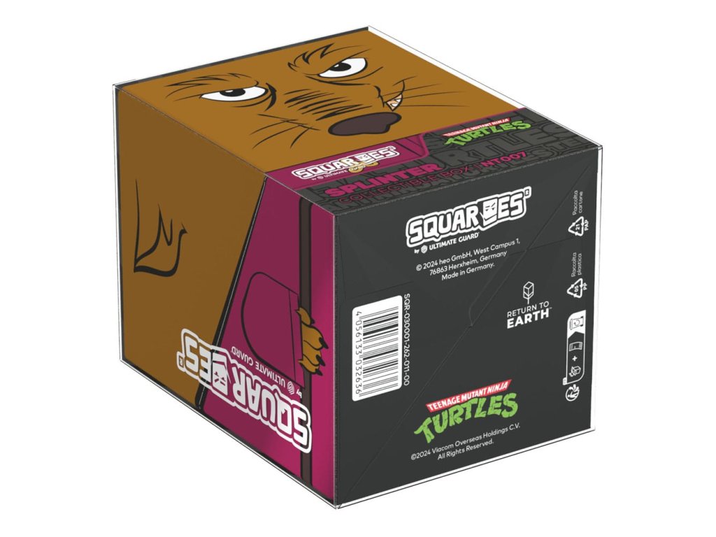 Sběratelská krabička pro uložení balíčků TCG, příslušenství pro stolní hry a/nebo sběratelských předmětů. Squaroe Splinter z edice Teenage Mutant Ninja Turtles™ pojme až 100 karet v dvojitých ochranných obalech, pokud je používán jako krabička na balíček. Squaroes jsou vyrobeny z 78% obnovitelných zdrojů a dokonale zapadají do samostatně dostupné sběratelské skříně. - Plně potištěná sběratelská krabička se zabezpečeným uzavřením - Vyrobena v Německu z 78% obnovitelných zdrojů- Krabička na balíček pojme až 100 karet ve dvojitém obalu nebo 120 karet v jednoduchém obalu- Rozměry: 98,5 x 76 x 75 mm