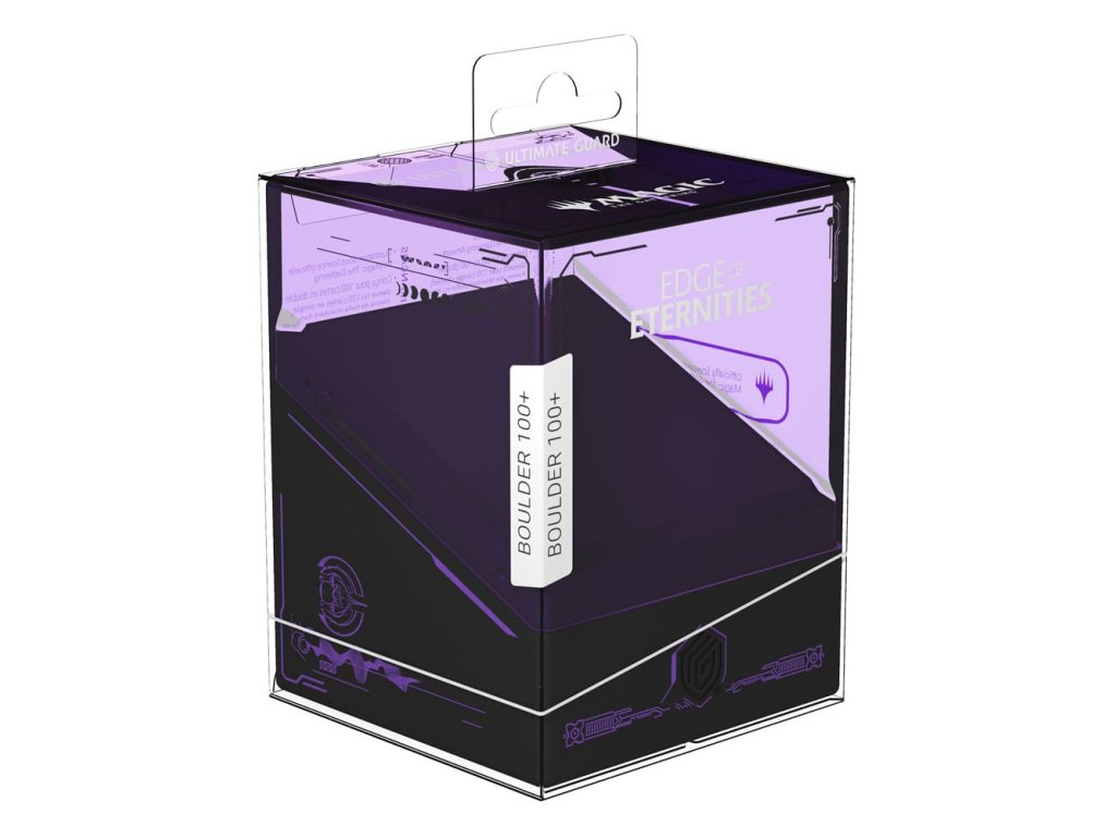 Boulder 100+ je odolné a spolehlivé krabičkové pouzdro na karty, které zdobí oficiálně licencované umění ze sady „Okraj věčnosti“ hry Magic: The Gathering. Přestože má Boulder 100+ pevné zavírání, je lehký a pohodlně se otevírá a pojme 100 dvojitě obalených karet v pouzdrech Ultimate Guard. Navrženo tak, aby bylo možné kombinovat s veškerými skladovacími krabicemi Ultimate Guard, Bouldery se obzvláště dobře vejde do krabic Arkhive, Superhive a Flip'n'Tray.
