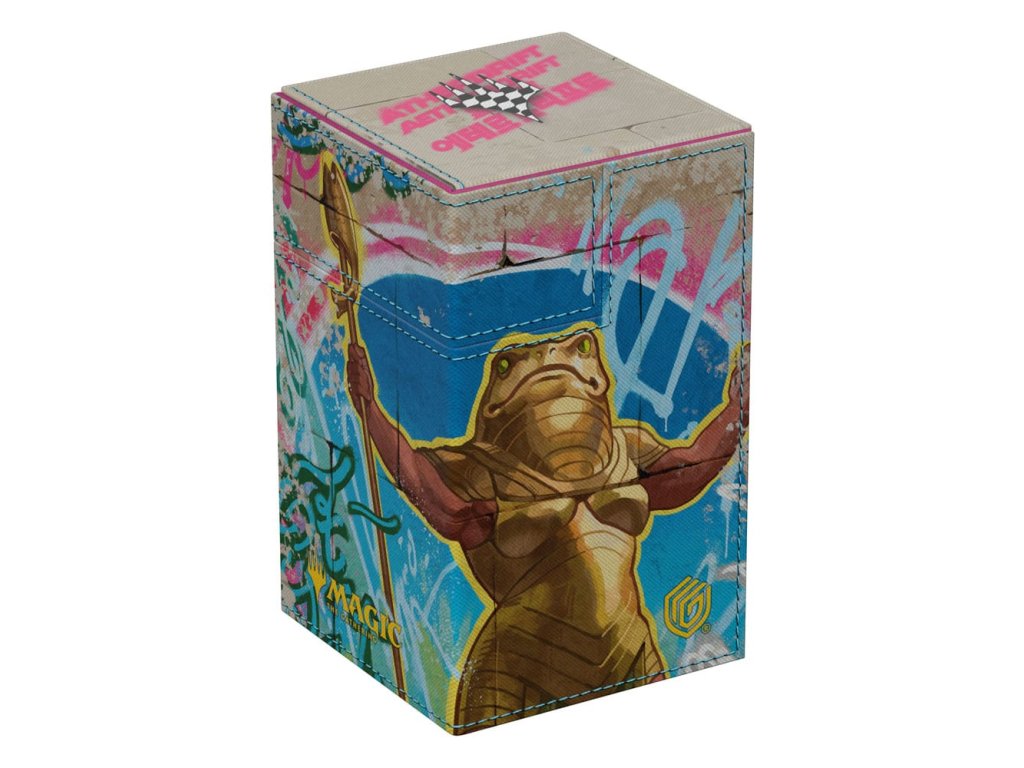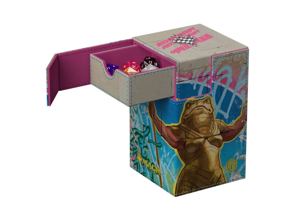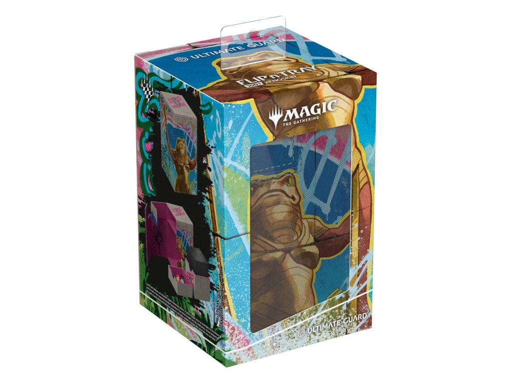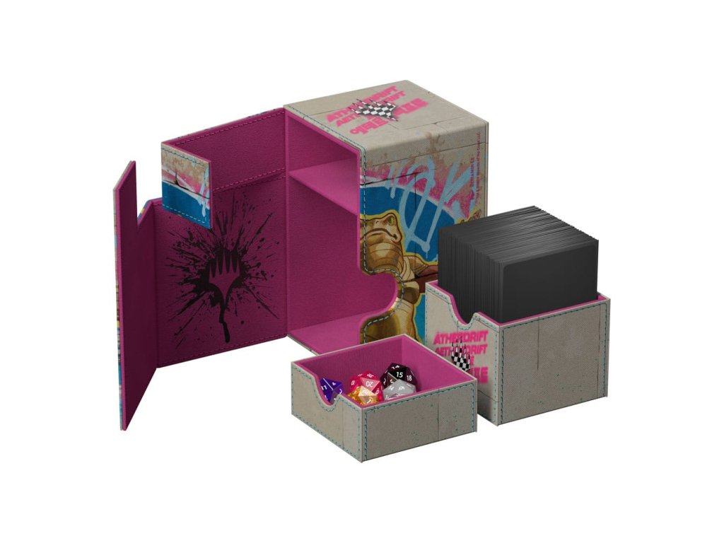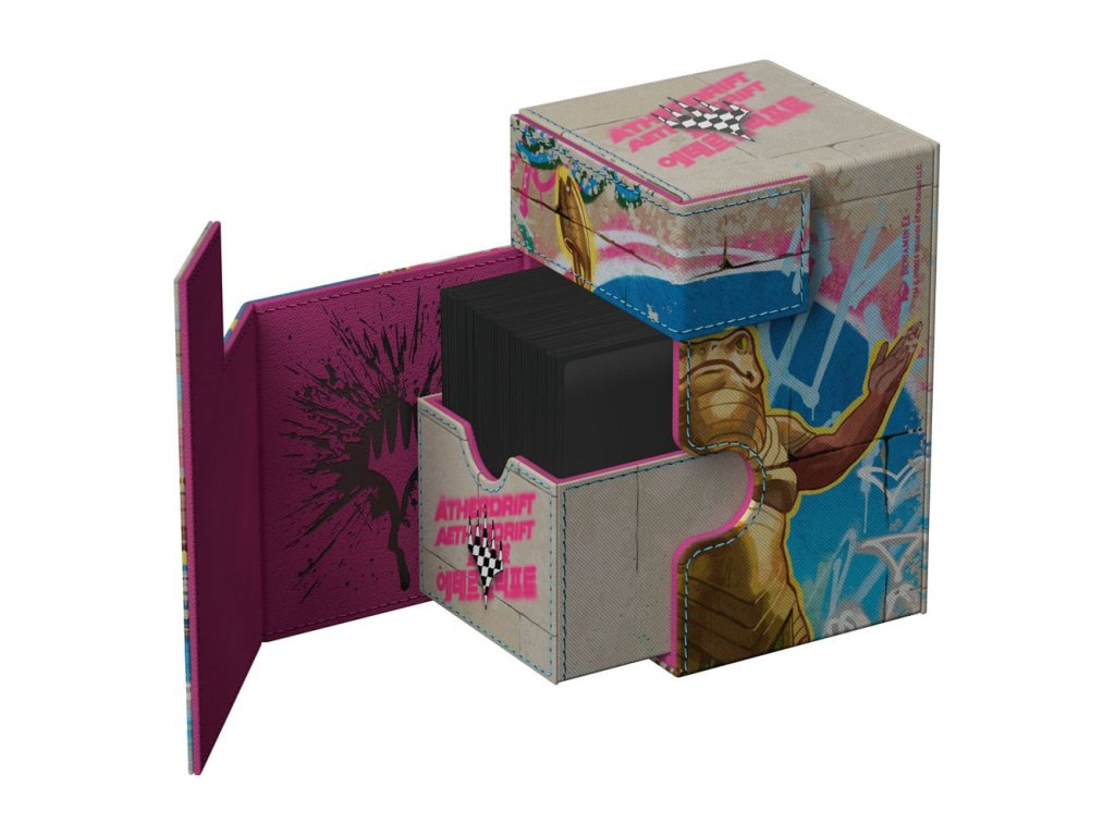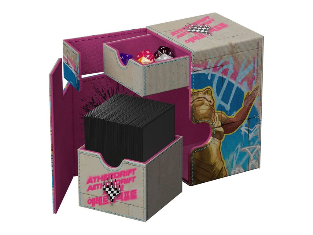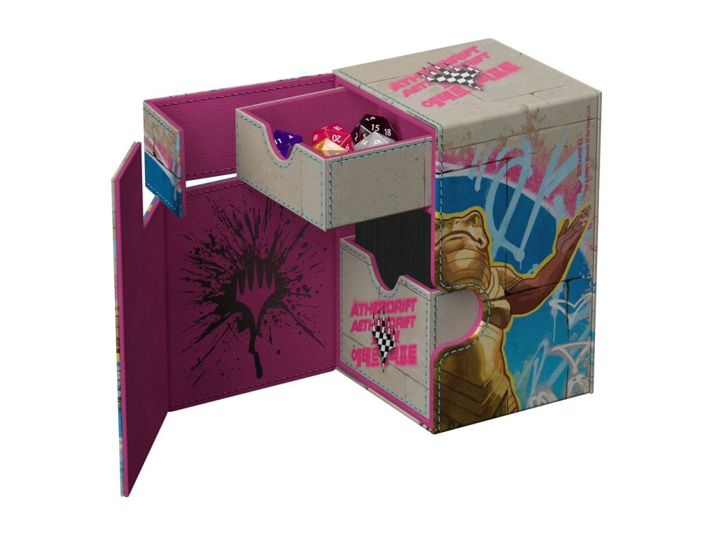 Flip'n'Tray 100+ Xenoskin je vysoce kvalitní krabička na karty TCG, která nabízí prémiovou ochranu karet díky odolnému materiálu Xenoskin, vnitřnímu výstelce z mikrovlákna a silnému magnetickému uzavírání. Deck box má integrovaný a vyjímatelný doplněk na kostky, který lze přistupovat nezávisle a je potištěný v plné barvě s oficiálně licencovanými díly z nadcházející sady Magic: Shromažďování „Aetherdrift“. Flip'n'Tray 100+ Xenoskin je optimalizován pro uchování 100 karet s dvojitým obalem nebo 120 karet s jednoduchým obalem v obalech Ultimate Guard.