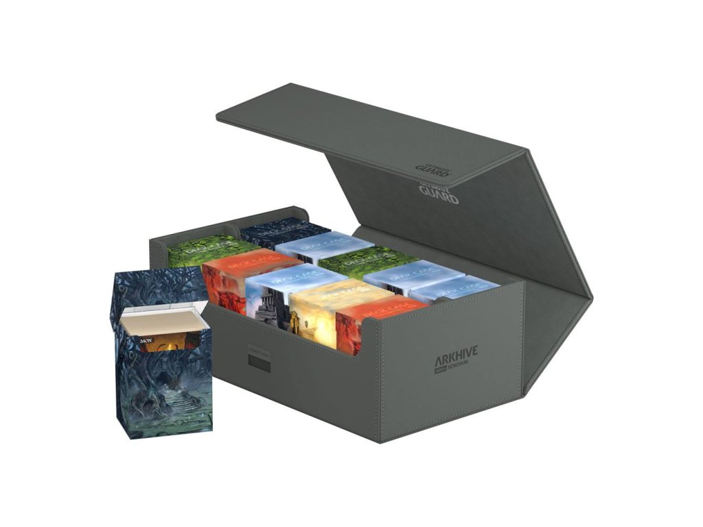 Zdvojnásobte své úložiště s naším Arkhive 800+! Tento box nabízí prostor pro více než 800 karet ve standardní velikosti s dvojitým obalem, pojme 350 "Toploader" karet nebo jeho dvě řady můžete jednoduše zaplnit oblíbenými krabičkami a pouzdry. Její jednobarevné provedení nabízí pro hráče a sběratele stylový a nadčasový design. Inovativní uzávěr ZnapClaw udrží vaši sbírku v bezpečí na vašich cestách.