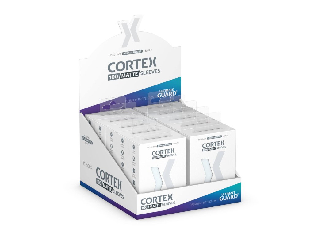 Obaly Ultimate Guard CORTEX jsou navrženy pro každodenní používání a kombinují precizní konstrukci a vysoce kvalitní materiály s dalším důrazem na hodnotu. Jsou určeny pro každodenní použití, nabízejí atraktivní cenu a navíc se vyznačují plně neprůhledným podkladem, dokonalým pocitem při míchání a vysoce kvalitní odolností pro dlouhé herní seance.