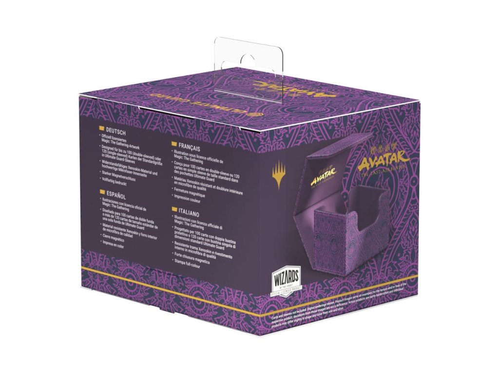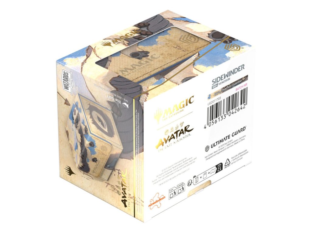 Sidewinder 100+ je vyroben z odolného materiálu Xenoskin a pojme až 100 dvojitě pouzdřených karet, které jsou v boxu na karty bezpečně díky silnému magnetickému uzávěru a měkkému vnitřnímu obložení z mikrovlákna. Odolný, vysoce kvalitní povrch Sidewinderu z materiálu Xenoskin je potištěn plnobarevně oficiálně licencovaným uměleckým dílem z Magic: The Gathering | Avatar: Poslední vládce větrů.