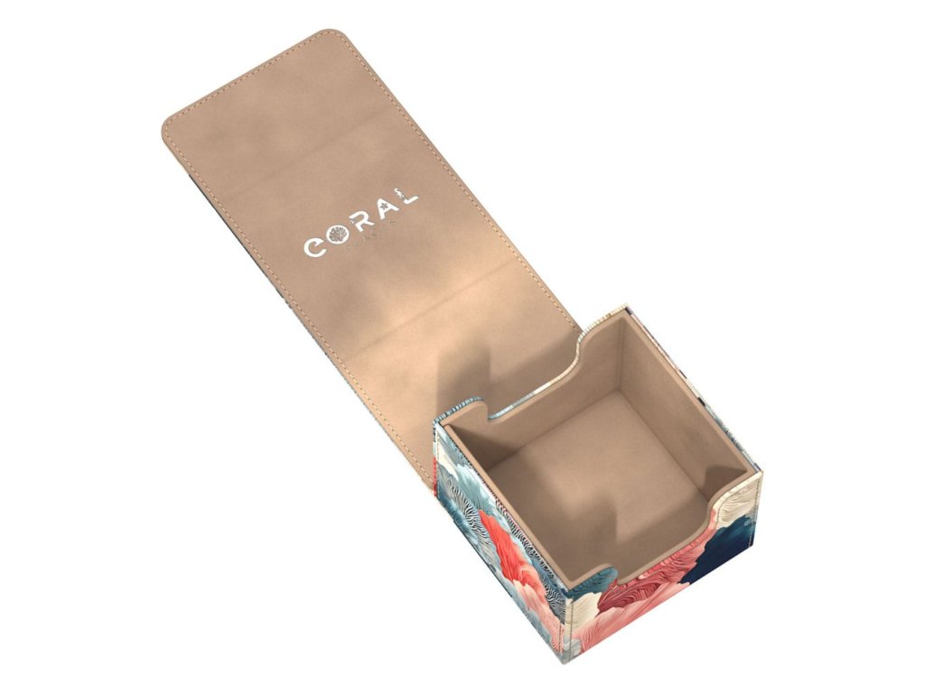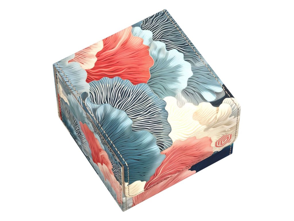 Ponořte se do rozkvetlých podmořských světů s Coral Places Sidewinders od Ultimate Guard! Trvale udržitelné krabičky na karty jsou vyrobeny ze 52% recyklovaných materiálů a kromě odolného povrchu Xenoskin mají silné magnetické uzavírání a vysoce kvalitní vnitřní výstelku z mikrovlákna. S kapacitou 133 dvojitě obalených karet* je to dokonalá krabička na karty MTG pro vaši balíček Commander s extra prostorem pro tokeny! Bezplastové balení je také zcela vyrobeno z recyklovaného papíru a filmu na bázi celulózy.