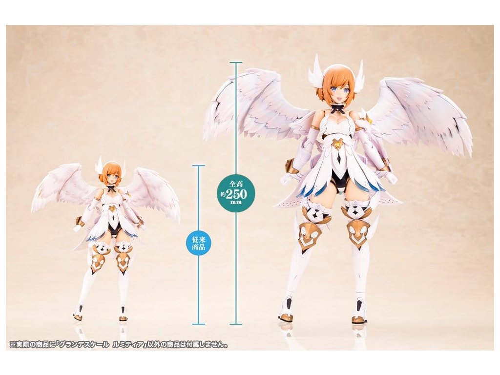 "Všechno bude určitě v pořádku, pokud se ty a já zapojíme, Mistře!"Od Kotobukiya's nové sci-fi fantasy série, ARCANADEA, je Dears s andělskou formou, Lumitea, přivezena k životu v zcela novém modelu Grande Scale o výšce 25 cm! Lumitea byla navržena populárním ilustrátorem necömi, který je hlavním návrhářem postav pro celou sérii ARCANADEA.Pomocí určitých dílů lze tento model sestavit do normálního módu nebo do bojového módu Wilize. Pôvodní, detailní CAD data Kotobukiya byla zvětšena na nový GRANDE SCALE. Od snadné montáže a malování po širokou škálu hry a pohyblivosti, tento model zahrnuje všechny skvělé vlastnosti většího modelu. Součástí balení a vlastnosti:- Model lze sestavit do normálního režimu nebo Wilize módu v boji výměnou určitých částí.- Sada obsahuje krycí díly pro díry na vlasech, což umožňuje zobrazit model s nebo bez doplňků z peří.- Sada obsahuje čtyři typy předtištěných částí obličeje.- K nalepení jsou zahrnuty nálepky, které uživatelům pomáhají vytvářet jejich preferované výrazy.- Sada obsahuje kruhovou část pro zapojení s Lumitea.- Velká křídla modelu jsou vybavena klouby, které zajišťují, že unikátní design vypadá atraktivně a organicky, zatímco zachovává pohyblivost modelu.- Kruhová část magického kruhu pro křídla používá šestiúhelníkový kloub s otvorem 5 mm uprostřed. Kloub zabezpečuje stabilitu a úchop.- Kolena používají vyskakovací klouby, které nejsou vidět zepředu, když model stojí, čímž se udržuje tvar nohou a poskytuje široký rozsah pohybu.- Meč a pochva jsou zahrnuty jako speciální zbraně.- Sada obsahuje jednoduchý stojan na vystavení.- Sada obsahuje šest rukou s výraznými gesty, včetně sepnutých rukou pro modlitbu nebo pózy inspirované přáním.- Změny oproti standardní verzi- Přední části byly přepracovány jako jediný díl, aby se odstranily viditelné švy.- Dekorativní prvky, včetně středu snubního prstenu, mají jemněji dělené části pro vylepšené barevné kódování.- Designy očí na třech částech tváře byly aktualizovány.- Klouby v loktech byly vylepšeny na konstrukci s dvojitým kloubem.- Kolenní klouby v normálním módu mají nově navrženou konstrukci pro přirozenější vzhled, když jsou ohnuté.- K modelu jsou přiloženy další malé díly křídel a části magického kruhu pro normální režim, které jsou mírně zvětšeny a převedeny na spojení koule pro výraznější pózování.- Sada obsahuje ohebné části ozdob pasu speciálně navržené pro sezené pozice.Co je GRANDE SCALE?GRANDE SCALE je zcela nová série modelových stavebnic, která zvětšuje původní CAD data modelů Kotobukiya na větší, ještě impozantnější velikost.Stavebnice kombinuje všechny skvělé vlastnosti většího modelu, od snadné montáže a malování po širokou škálu hry a ovladatelnosti. Orientační datum vydání: srpen 2026