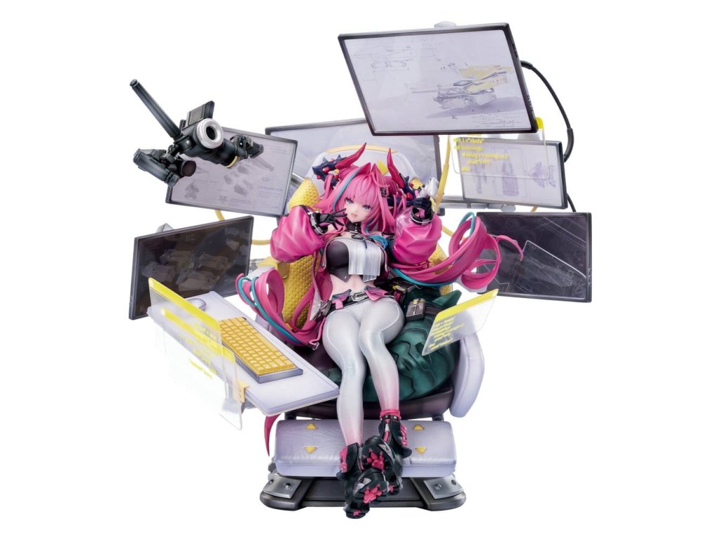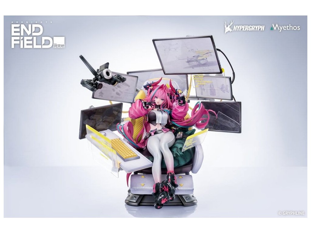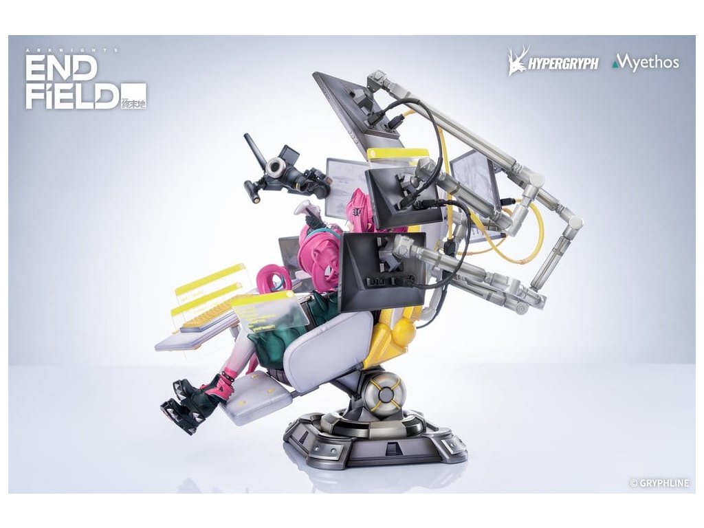 Z nové oblíbené hry Arknights: Endfield přichází brzy figura Yvonne v měřítku 1/7! Yvonne se opírá v jejím ergonomickém křesle, obklopená řadou obrazovek. Nosí precizně ušitý vršek spolu s kalhotami, které postupně přecházejí z bílé do růžové. Rukávy její střižené bundy napodobují kombinaci průhledných a neprůhledných materiálů, vytvořených s pomocí perleťových a laserových efektů, aby vytvořily vrstvené textury. Její dvojité culíky se vlní s vzdorovitými křivkami, zatímco ocas stočený za ní je štětček s živými odstíny podle Yvonnes'ho výběru, což dokazuje její individualitu a styl. Základna ergonomického křesla a stojany monitorů mají nastavitelné spoje pro úpravu úhlu. Obrazovky produktu lze aktualizovat pomocí vyměnitelných displejových panelů a kabely za monitory jsou odnímatelné a znovu sestavitelné, což umožňuje vytváření jedinečných scén podle jejích preferencí. Endministrátoři, vítejte v jejím doméně. Obsah setu: - Hlavní figura - Základna Bonus: - 3 x Vyměnitelný obsah zobrazení