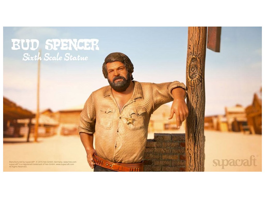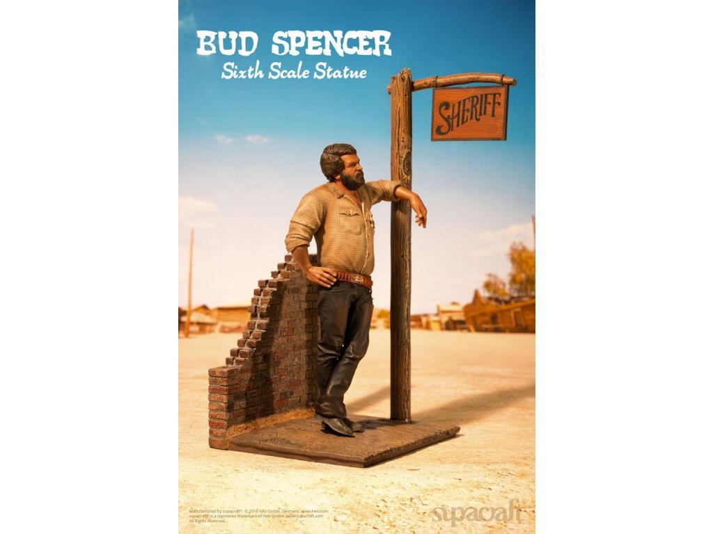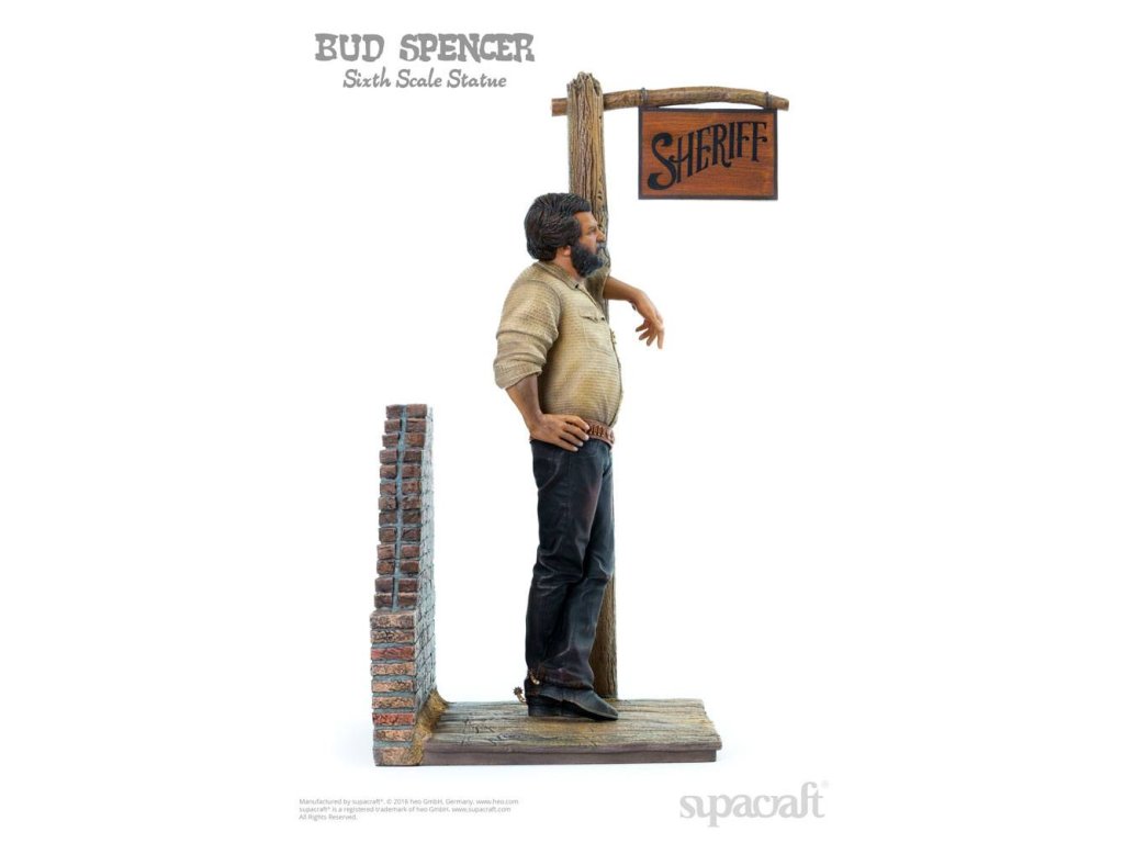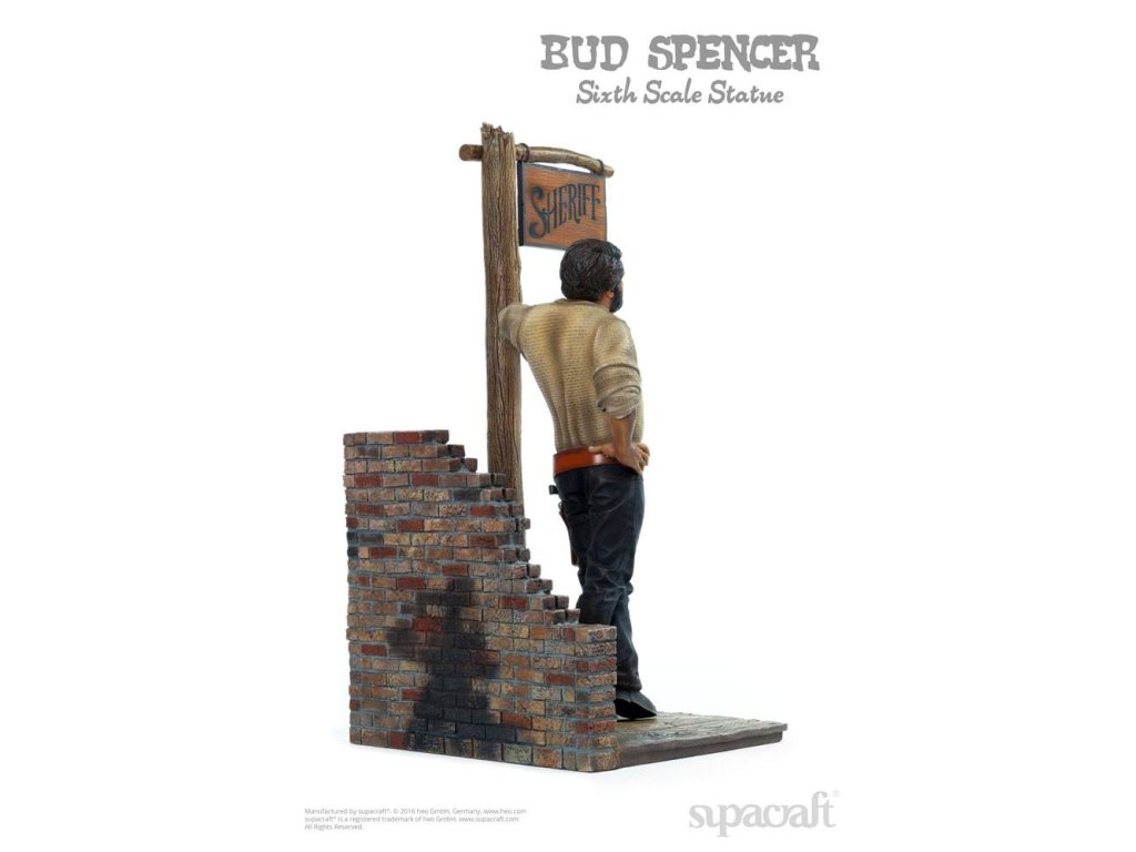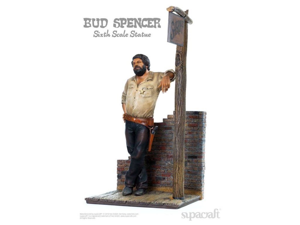 Olympijský plavec, skladatel, pilot, vynálezce a ikona evropského kultovního kina. Ačkoli to jsou některé (a ani ne všechny) etapy v působivém životě a díle velké Bud Spencera, mnoho z nás ho jednoduše vidí jako hrdinu našeho dětství! Málokterý herec má věrnější kultovní následovníky než tato italská filmová legenda. Fanoušci a sběratelé už mnoho let zoufale čekají na kvalitní sběratelské předměty Bud Spencera a čekání je konečně u konce! Supacraft® s hrdostí představuje první oficiálně licencovanou sochu Bud Spencera v měřítku 1/6 z pryskyřice na světě. Ukazuje jej v jeho raných dnech herectví ve několika filmech Spaghetti Western, které přinesly tomuto žánru tolik zábavy. Socha je věrná Budovu vzhledu z těch dob a je plná detailů. Hlava má nádhernou podobnost s Budem Spencerem a také jeho stavbu těla, uvolněný postoj a výraz obličeje a oblečení, které nosí - vše vypadá, jako by bylo přímo vystřiženo z filmového plátna. Mnoho drobných detailů, jako je prašný vzhled jeho oblečení, potužka na zádech, nečistoty pod nehty, jeho opasek, hlavice šerifa, ostrohy a dokonce i místo, kde je jeho košile vytáhnutá, potěší srdce jakéhokoli sběratele. Odnímatelná zbraň skvěle pasuje do pouzdra. Krásně vyrobený diorámový podstavec dává všemu dokonalý finální dotyk. My v supacraft® jsme měli čest a privilegium spolupracovat přímo s panem Spencerem na vytvoření tohoto mistrovského díla! Sám Maestro odsouhlasil konečný prototyp tohoto sběratelského kusu na začátku roku 2016, než bohužel později toho roku zemřel. Budeme ho vždy vzpomínat jako laskavého, pokorného, převyšujícího života, kterým byl, a jsme rádi, že můžeme takovým úžasným kusem umění ctít jeho odkaz. Socha je omezená na 1.500 kusů a bude zahrnovat certifikát o pravosti a medaili pravosti, která je umístěná v pouzdře s vylepením z koberce.Vlastnosti: - socha z pryskyřice 1/6 - základna diorámy ve stylu westernu - limitovaná edice 1.500 kusů - certifikát a medaile pravosti - barevné kartonové balení s pěnovým interiéremSpecifikace produktu: Výška: 44 cm (výška postavy bez základny: 32 cm) Délka: 20 cm, šířka: 22 cm, hmotnost: 3965 g.Doplňkové parametry