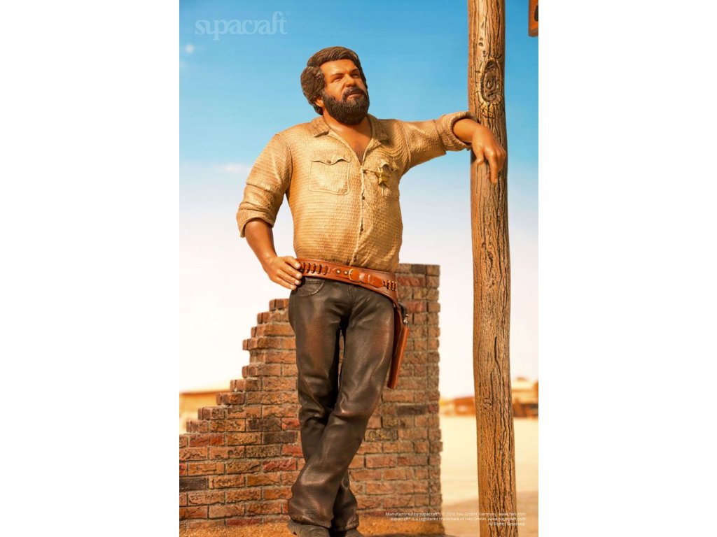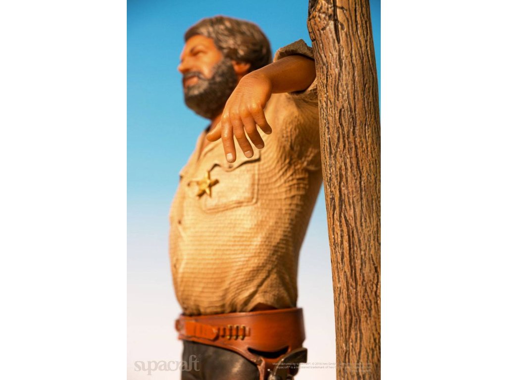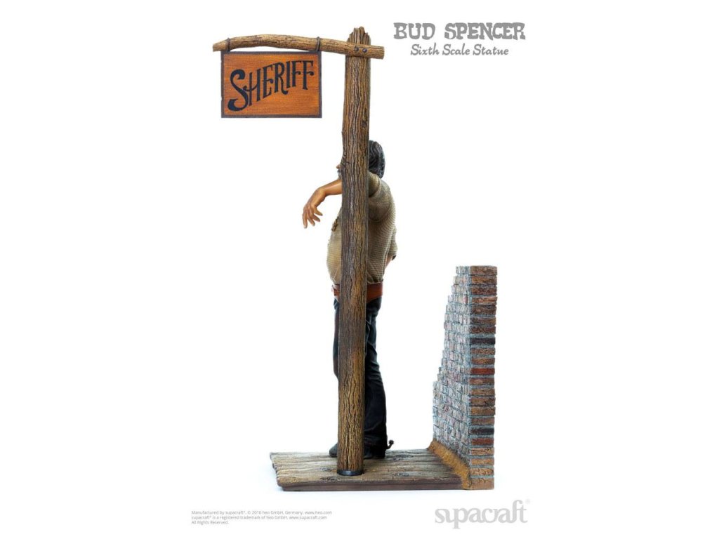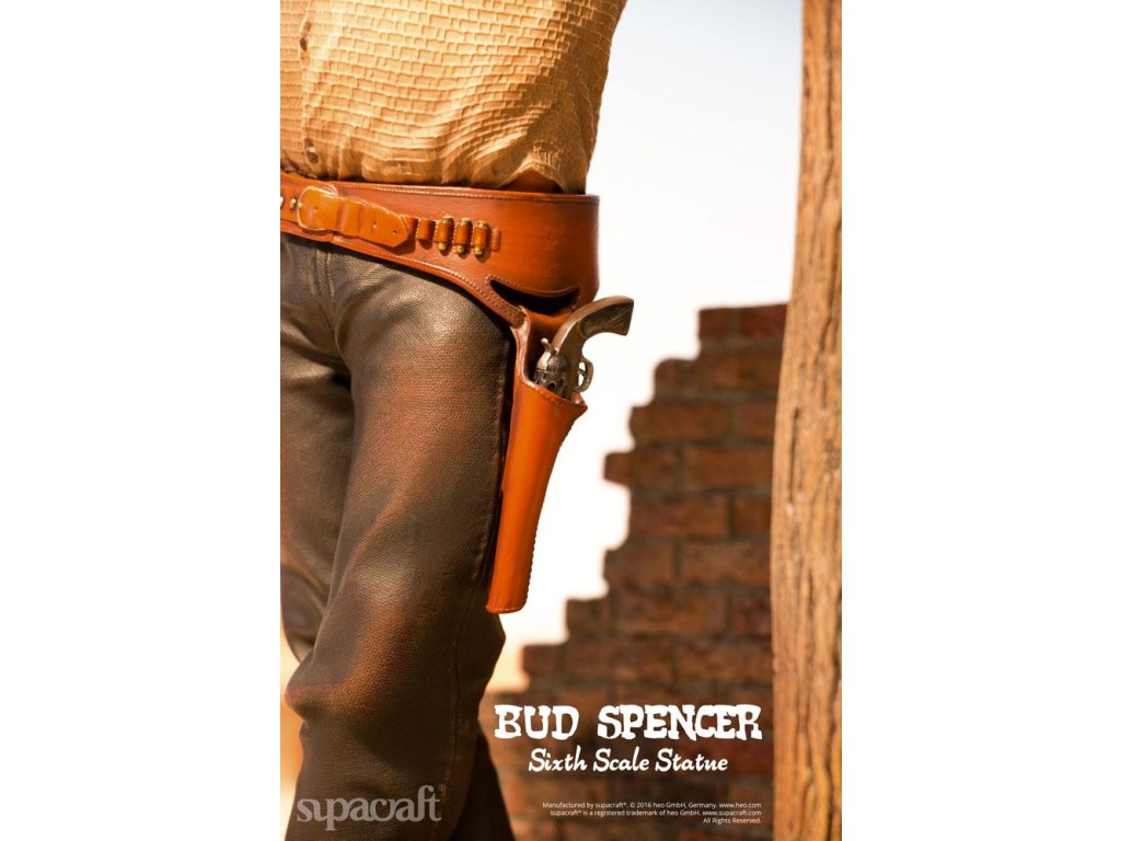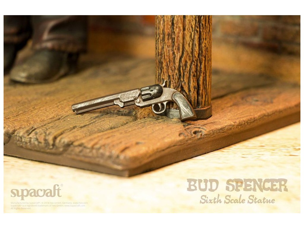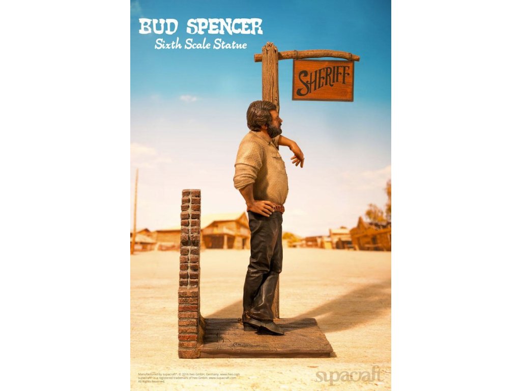 Olympijský plavec, skladatel, pilot, vynálezce a ikona evropského kultovního kina. Ačkoli to jsou některé (a ani ne všechny) etapy v působivém životě a díle velké Bud Spencera, mnoho z nás ho jednoduše vidí jako hrdinu našeho dětství! Málokterý herec má věrnější kultovní následovníky než tato italská filmová legenda. Fanoušci a sběratelé už mnoho let zoufale čekají na kvalitní sběratelské předměty Bud Spencera a čekání je konečně u konce! Supacraft® s hrdostí představuje první oficiálně licencovanou sochu Bud Spencera v měřítku 1/6 z pryskyřice na světě. Ukazuje jej v jeho raných dnech herectví ve několika filmech Spaghetti Western, které přinesly tomuto žánru tolik zábavy. Socha je věrná Budovu vzhledu z těch dob a je plná detailů. Hlava má nádhernou podobnost s Budem Spencerem a také jeho stavbu těla, uvolněný postoj a výraz obličeje a oblečení, které nosí - vše vypadá, jako by bylo přímo vystřiženo z filmového plátna. Mnoho drobných detailů, jako je prašný vzhled jeho oblečení, potužka na zádech, nečistoty pod nehty, jeho opasek, hlavice šerifa, ostrohy a dokonce i místo, kde je jeho košile vytáhnutá, potěší srdce jakéhokoli sběratele. Odnímatelná zbraň skvěle pasuje do pouzdra. Krásně vyrobený diorámový podstavec dává všemu dokonalý finální dotyk. My v supacraft® jsme měli čest a privilegium spolupracovat přímo s panem Spencerem na vytvoření tohoto mistrovského díla! Sám Maestro odsouhlasil konečný prototyp tohoto sběratelského kusu na začátku roku 2016, než bohužel později toho roku zemřel. Budeme ho vždy vzpomínat jako laskavého, pokorného, převyšujícího života, kterým byl, a jsme rádi, že můžeme takovým úžasným kusem umění ctít jeho odkaz. Socha je omezená na 1.500 kusů a bude zahrnovat certifikát o pravosti a medaili pravosti, která je umístěná v pouzdře s vylepením z koberce.Vlastnosti: - socha z pryskyřice 1/6 - základna diorámy ve stylu westernu - limitovaná edice 1.500 kusů - certifikát a medaile pravosti - barevné kartonové balení s pěnovým interiéremSpecifikace produktu: Výška: 44 cm (výška postavy bez základny: 32 cm) Délka: 20 cm, šířka: 22 cm, hmotnost: 3965 g.Doplňkové parametry