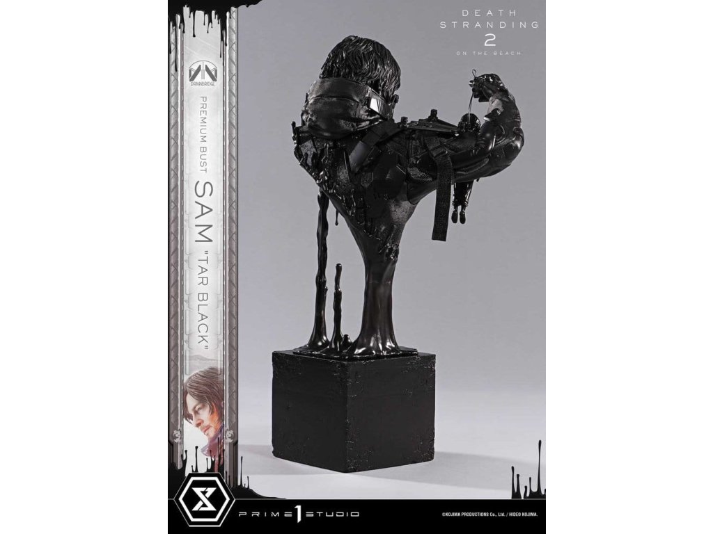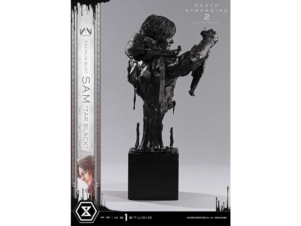 Kymácí se Dollman, stoupající Dehet. Novou cestu Sama představuje konceptuální byst. Od vizionářského tvůrce her Hideo Kojima a jeho týmu z Kojima Productions přichází „DEATH STRANDING 2: NA PLÁŽI“. Z tohoto nového mistrovského díla představuje Prime 1 Studio byst Sam Porter Bridges. Na vizuálním zpracování původního „DEATH STRANDING“ staví tento byst v měřítku 1/3, který zachycuje dech beroucí realismus pokračování s bezkompromisním nasazením. Vytesaný s plnou mírou řemeslného umění Prime 1 Studio, spojuje Samova oddaného společníka, Dollmana, s náporem černého dehtu, čímž vzniká koncepčně řízený kus, který vtěluje podstatu příběhu. Jeho jemný výraz a drsné vybavení byly každé reprodukovány s pečlivou pozorností k textuře. Stlačovací tmavé tóny zdůrazňují ostrost každého detailu. Postava Sama, která je nepředvídatelně podporována při držení kymácího se Dollmana, symbolizuje hlavní téma hry „spojení“. I když nestabilní, vazba zůstává - zve vás, abyste na kousek promítli své vlastní pocity. Vznešený prostřednictvím motivu „Tar Black“, tento byst Sam stojí jako sběratelský kus věnovaný každému hráči, který s ním cestoval.