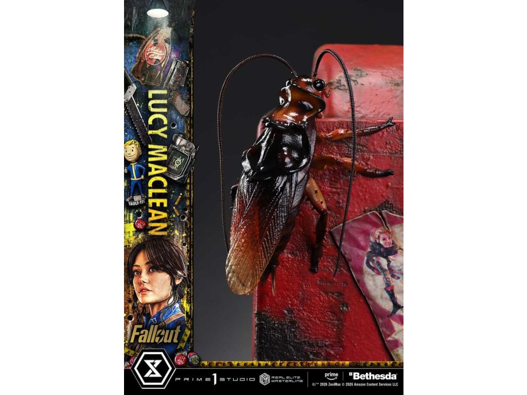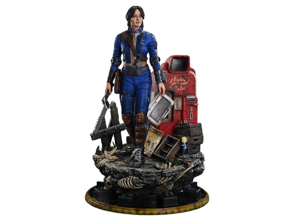 "Okey Dokey." Hrdinka Vaultu 33, její bouřlivé cestování zaznamenané v měřítku 1/4. Série "Fallout", odehrávající se 200 let po jaderné válce, proplétá příběhy tří protagonistů. Z dramatické série, která přenáší ostrý satirický duch původní hry, je Lucy MacLean postavena do života ve skutečné elitní řadě Masterline. Vydá se do Pustině, kde vládne násilí a chaos, aby zachránila svého otce uneseného lupiči. Cesta Lucy MacLean je zaznamenaná v měřítku 1/4. Její pomalý, opatrný krok, jak zkoumá své okolí, symbolizuje její optimistickou povahu. Její vzpřímený postoj vyplývající z výchovy v jejím domově, Vault 33, také svědčí o jejím silném smyslu pro disciplínu a integritu. Její portrét, vypracovaný s plným rozsahem naší sochařské a malířské práce, zachycuje podobnost Elle Purnell. Měkké tóny pleti, lesklé rty a její pronikavý pohled jsou pečlivě realizovány. Skafandr zachycuje nejen texturu materiálu, ale také známky opotřebení a stárnutí. Pip-Boy je vybaven světelnou funkcí LED. Navíc jsou přiloženy tři vyměnitelné pravé ruce: 10mm Pistole, Ripper a svazek hadru, každá výměna připomíná památné scény. Rozbitý automaty s Nuka-Colou. Usmívající se Vault Boy. Radroach číhající za ní. Speciálně navržená základna vrství povrch Pustiny s dveřmi Vaultu a skládá ikonické prvky z této série. Užijte si to spolu s významem za zprávou "NEZTRAŤTE SVŮJ HLAVU". Spolu s Ghoul a nadcházejícím Maximem, tento kus vyjadřuje drsnou realitu Pustiny jako soudržnou kolekci. Specifikace: - Základna ve stylu Fallout - 3 x vyměnitelné pravé ruce (10mm pistole, chirurgický Ripper, svazek hadru) - 2 x vyměnitelné pouzdra (prázdné, s 10mm pistolí) - LED osvětlení (Pip-Boy)) Způsob napájení LED: TBD * Připravte baterie, USB kabely nebo další potřebné položky v závislosti na konečné metodě napájení.