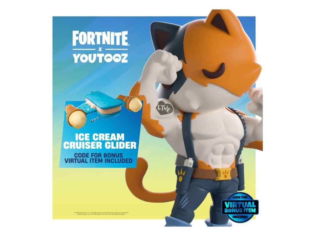 "K snídani jím kousky ryb, jako jsi ty" Meowscles se posiluje, aby vás s jejich debutem Youtooz dovedl k vítězství! Stojí vysoký 5 palců a napíná své obrovské bicepsy, zatímco naklání hlavu dolů, aby něžně políbil jeden z nich v obdivu, špičaté uši vyčuhují z vrchu jeho modré, oranžové a krémové kocouří hlavy, která odpovídá naprosto namakanému holému hrudníku. S tmavě modrým postrojem přetáčejícím se přes jeho ramena křížem na zádech a párem pistolí v pouzdrech na jeho bocích nosí těsné modré kalhoty a pevné hnědé boty, zatímco dlouhý oranžový ocas mu vychází z jeho zad. Exteriér jejich balení ukazuje, jak zasadili jiskřivý úder do fialového boxovacího pytle, zatímco interiér je pokrytý světle modrým gradientem. Bílá čára pak proběhne žlutým a modrým ochranným obalem, zatímco jejich figura je vidět skrze velké, průhledné okno na přední části balení. Tento sběratelský předmět je dodáván v matném, raženém, ochranném vnějším obalu a v plastovém ochranném pouzdru přizpůsobeném na míru pro maximální ochranu během přepravy.O hře Fortnite:Fortnite je online videohra vyvinutá a publikovaná společností Epic Games. S několika různými herními módy, které mají hráče bojovat, aby byli posledním stojícím, spolupracují s přáteli na obraně cílů nebo vytvářejí vlastní arény, její časté aktualizace, divoké příběhy a herní události vedly k tomu, že je to naprostý kulturní fenomén!