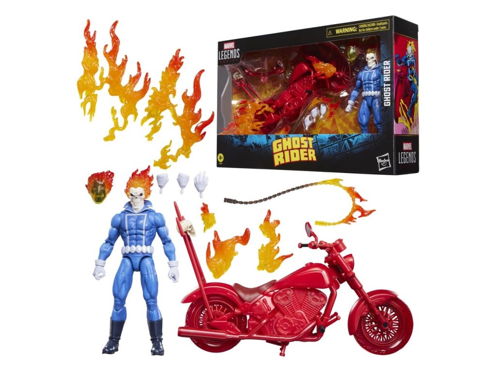 Přineste vzrušení a zázraky Marvelovského vesmíru do své sbírky s figurkou Ghost Rider od společnosti Hasbro Marvel Legends! Tato sběratelská akční figurka Marvel v měřítku 6 palců je detailně zpracovaná tak, aby vypadala jako postava Johnny Blaze z komiksů Ghost Rider od Marvelu. Akční figurka Ghost Rider je plně artikulovaná s prémiovým designem a pohyblivou hlavou, pažemi a nohami. Tato sada akčních figurek obsahuje 7 dílů: alternativní plamenící lebku, 3 alternativní ruce, řetěz a ikonickou ohnivě červenou motorku Ghost Ridera s detailem plamene. Akční figurky Marvel od společnosti Hasbro mají měřítko 6 palců, což je činí skvělými pro pózování a zobrazování ve sbírkách fanoušků. Pózujte Ghost Ridera, jak se řítí po dálnici na své motorce nebo vykonává ohnivou pomstu, a znovu si představte scény inspirované komiksy Ghost Rider na své půdě s akčními figurkami Marvel Legends a sběratelskými předměty Marvel.