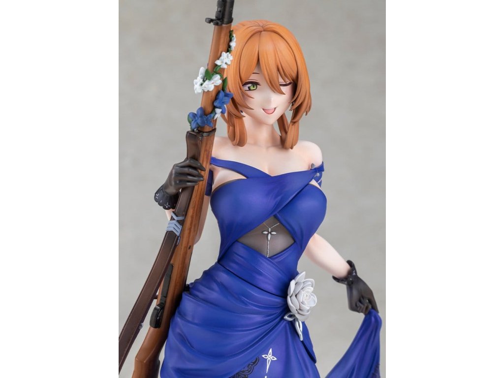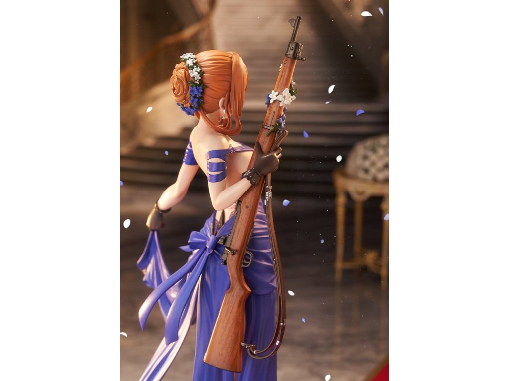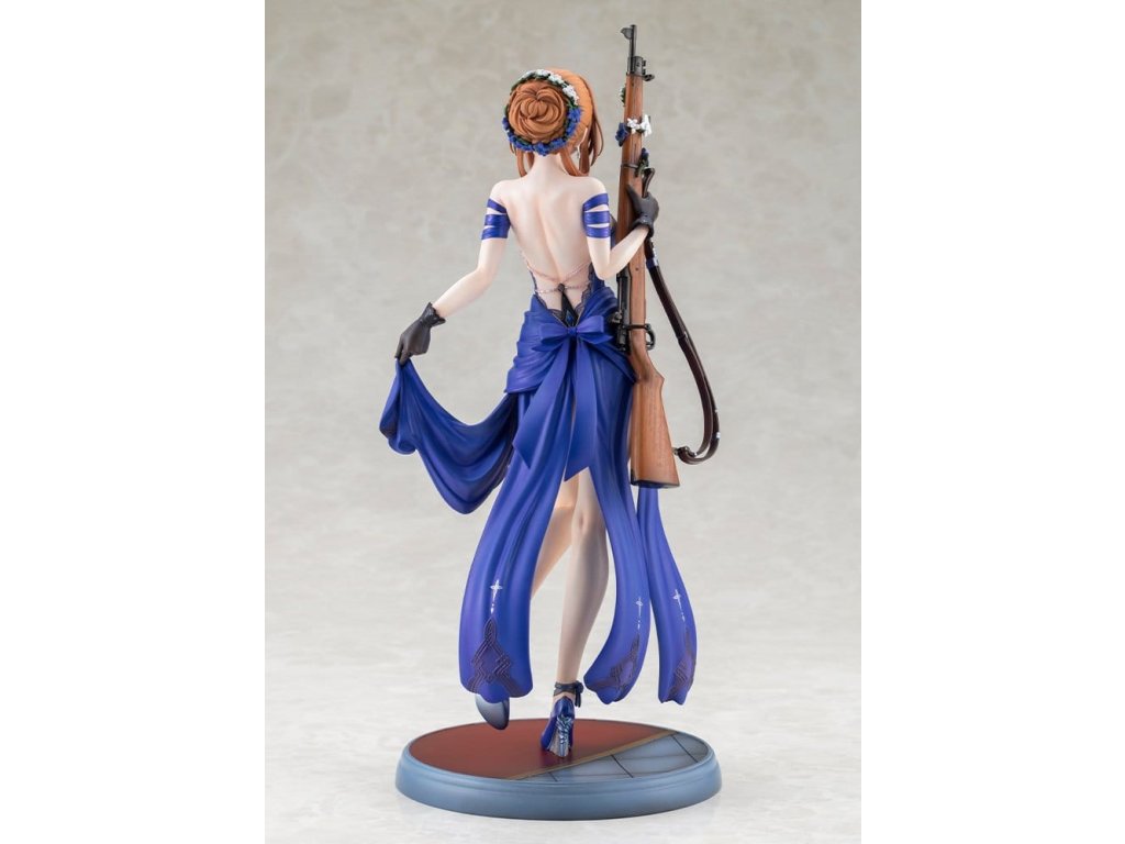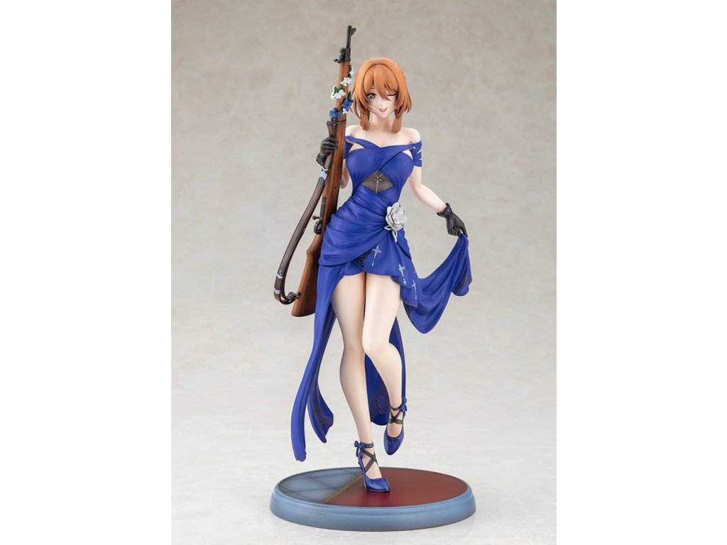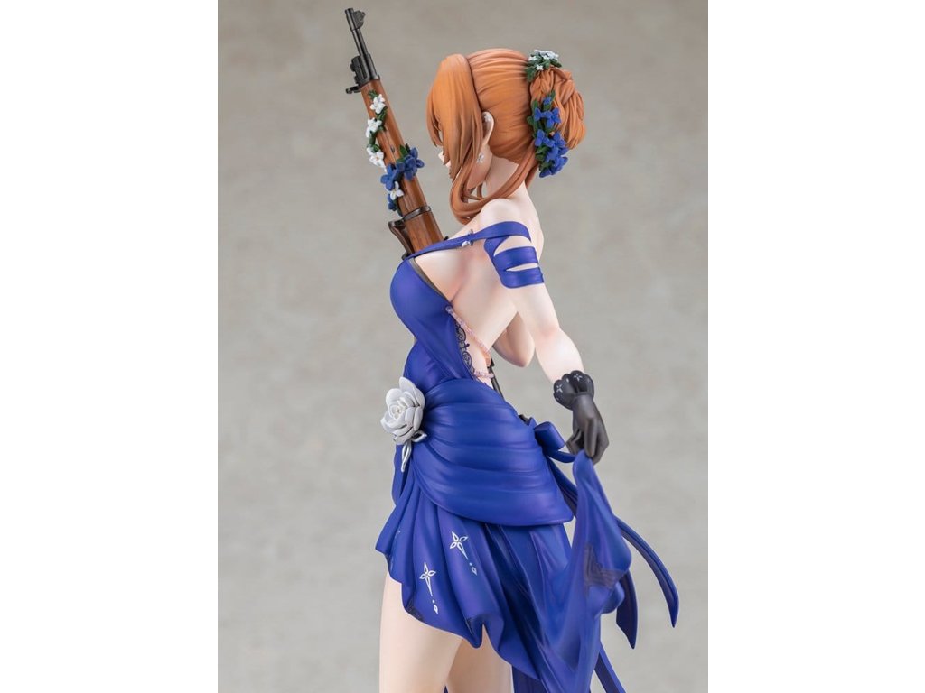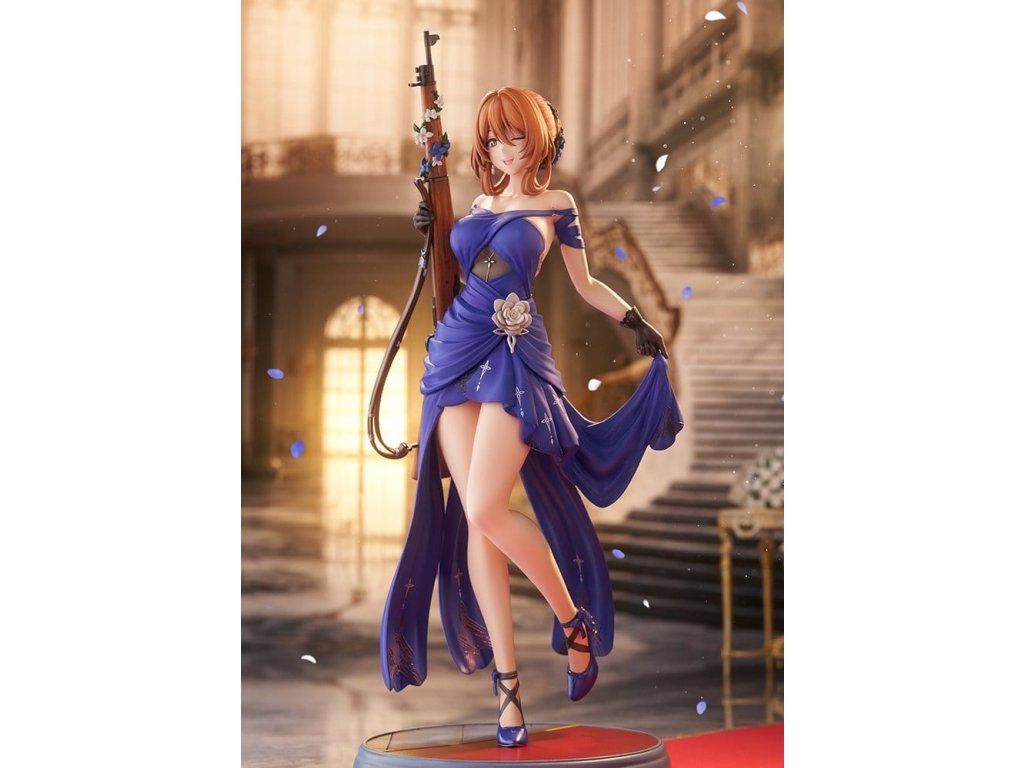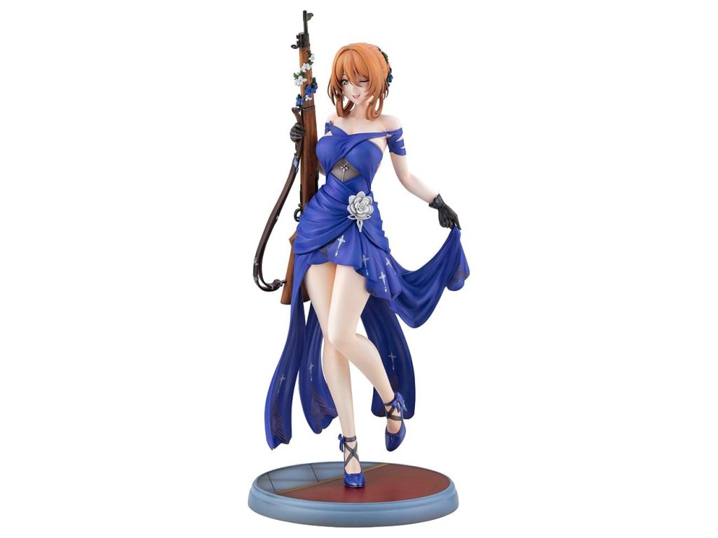 Springfield, jemná a rozhodná manažerka kavárny Zucchero z DÍVČÍ FRONTY 2: EXILIUM, je nyní k dispozici jako figura ve svém nádherném šatovém oblečení! Její póza je definicí elegance a grácie, jako by právě vycházela z taneční sály. Její roztomilé mrknutí je také okouzlující! Výrazné modré šaty jsou dokončeny ostrými záhyby a mírně posunutou perleťovou barvou, což jim dodává pocit luxusu. Určitě si všimněte odvážně otevřeného zadního dílu a elegantních tělesných linií kolem pasu. Distinktivní účes do nádherného drdolu, jemné květinové ozdoby a šperky, a dokonce i dřevěné zrní a kovové kování pušky byly pečlivě rekonstruovány až do nejjemnějších detailů. Nezmeškejte šanci přivítat ji ve své sbírce, velitelko!