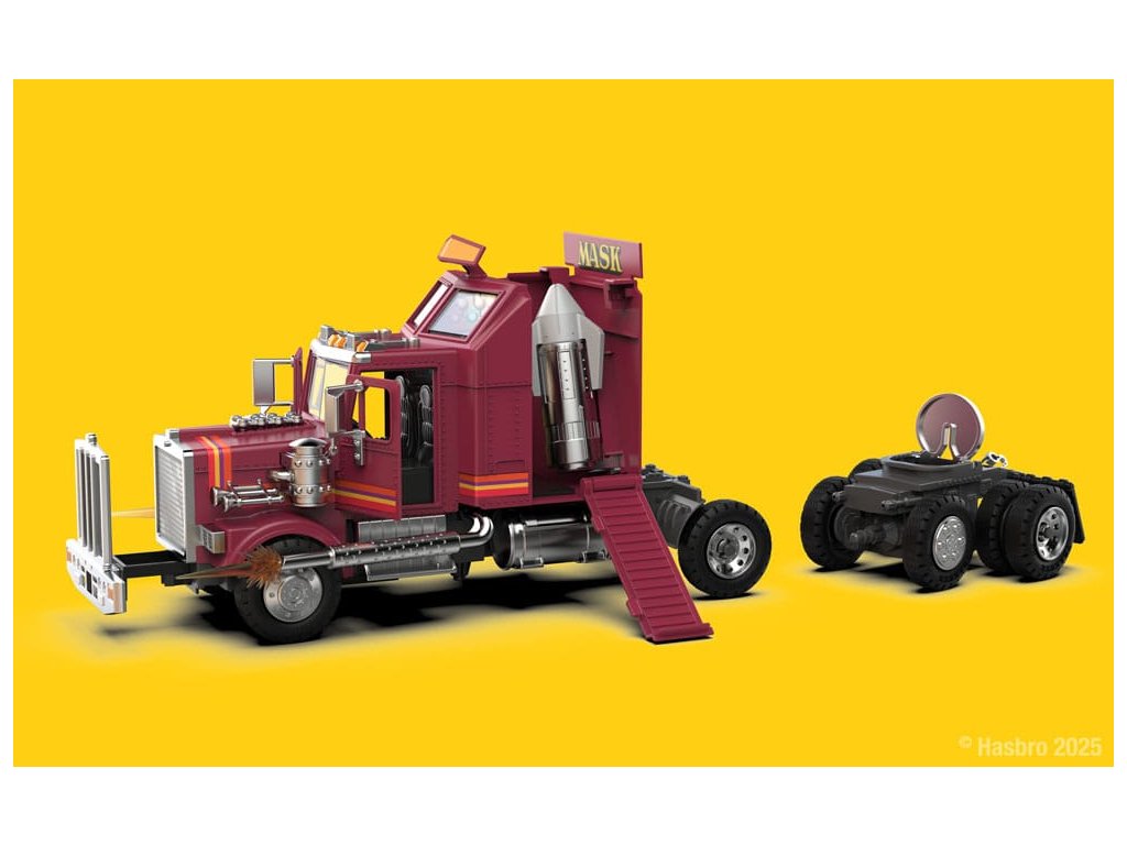 Připravte se na akci těžké kategorie s Rhino, hybnou silou týmu M.A.S.K. Tato nákladní auta vypadá jako obyčejný velký kamión. Po stisknutí tlačítka se Rhino transformuje na mobilní obrannou jednotku. Oficiálně licencované vozidlo. Je přibližně 12 cm vysoké a dodává se v krabičce s okénkem.