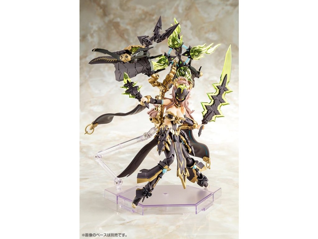Elegantní a nádherná varianta, AUV TSUKUYOMI FABULOUS, se připojuje k Megami Device!Je zde nová barevná variace dobře přijaté AUV Tsukuyomi Regalia!Na rozdíl od intenzivní osobnosti originálu, tato verze úplně přepracovává její design do jemné postavy překypující soucitností.Uživatelé se mohou nadále těšit na objemnou sadu zařízení a příslušenství tohoto modelu.Design znovu zpracovává Nidy-2D-!Tělo stroje navržené Masaki Apsy umožňuje krásné a dynamické pozice.Specifikace modelu:- Tvář, vlasy, hrudník, každou část brnění a další části jsou navrženy a vyřezány pro Tsukuyomi, což jí dává výraznou osobnost, která je zcela odlišná od Susanowa a Amaterasu.- Jsou zahrnuty tři nově navržené předmalované části obličeje.- Dodává se ve standardní barvě pleti A.- Každá část z její masivní siluety obsahuje různé funkce.- Velká kosy Tsukuyomi lze přeskládat do podpůrného mecha, Kugutsu. Vyvolejte tohoto roztomilého kostru maskota k její straně.- Části lze konfigurovat tak, aby model zobrazoval v plné zbroji pro "ozbrojený režim" nebo bez zbroje pro "nezbrojený režim".- Základní tělo stroje má úžasný rozsah flexibility, který umožňuje zobrazit ho v různých přirozených pozicích, jako je držení zbraně připravené k boji nebo sezení.- Souprava obsahuje různé zbraně a spojovací části, které lze použít k vytváření různých bojových scén.- 3mm koncové body na každé části a kompatibilní části hlavy umožňují tento model přizpůsobit existujícím dílům sérií M.S.G, Frame Arms, Frame Arms Girl, Hexa Gear, Sousai Shojo Teien, Arcanadea a Megalomaria.- Obsahuje samolepky pro oči a další značení.Co je "Megami Device"?Série Megami Device společnosti Kotobukiya je řada plastových modelových souprav o velikosti 14 cm (5½"), které jsou dodávány s řadou zbraní a zařízení, které vám umožňují těšit se z budování a přizpůsobování vlastního Megami zařízení pro použití v robotických bitvách. Každá postava má hlavní tělo nebo "machineca", navržené Masaki Apsy, zatímco unikátní brnění a mechanika modelů jsou navrženy ve spolupráci s různými hostujícími ilustrátory.Soupravy jsou dodávány s vícebarevnými díly a částmi obličeje předtištěnými tampografií, což je snadné sestavit bez nutnosti malování.Soupravy jsou vybaveny 3mm klouby, což je činí kompatibilními se všemi zbraněmi v řadě Megami Device, stejně jako s dalšími plastovými modelovými sadami Kotobukiya!